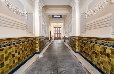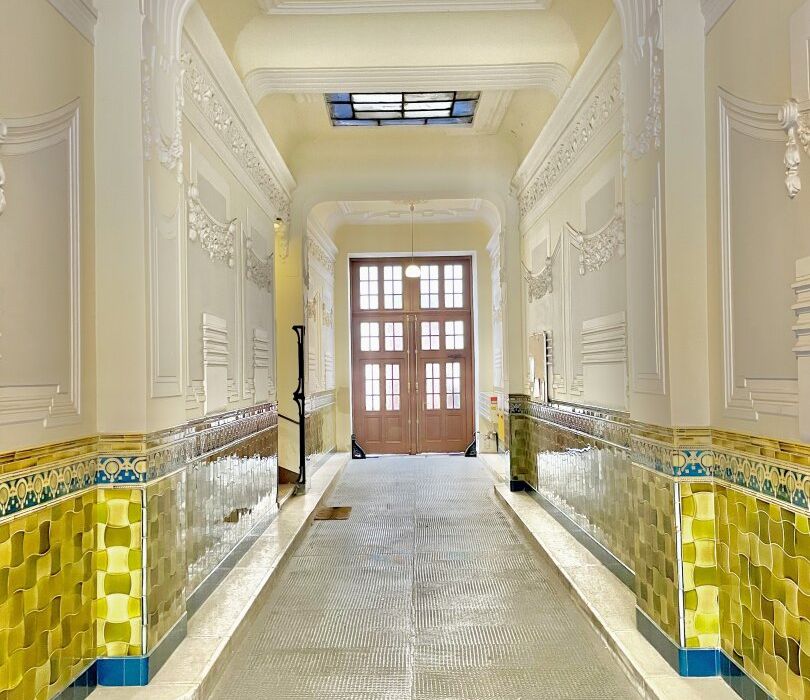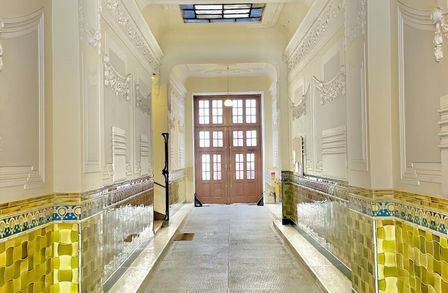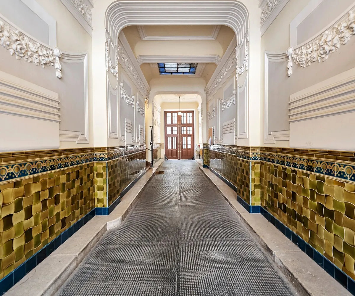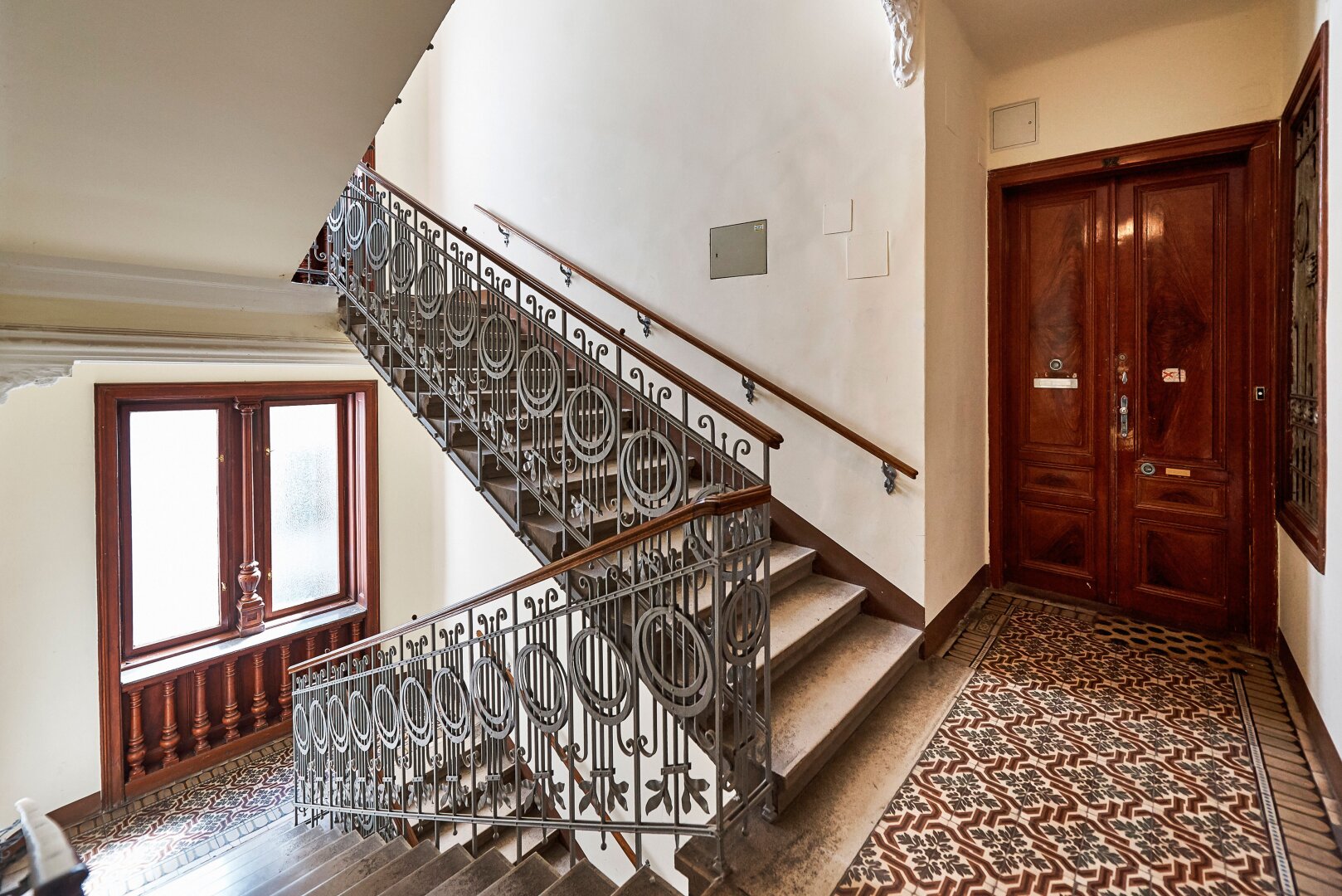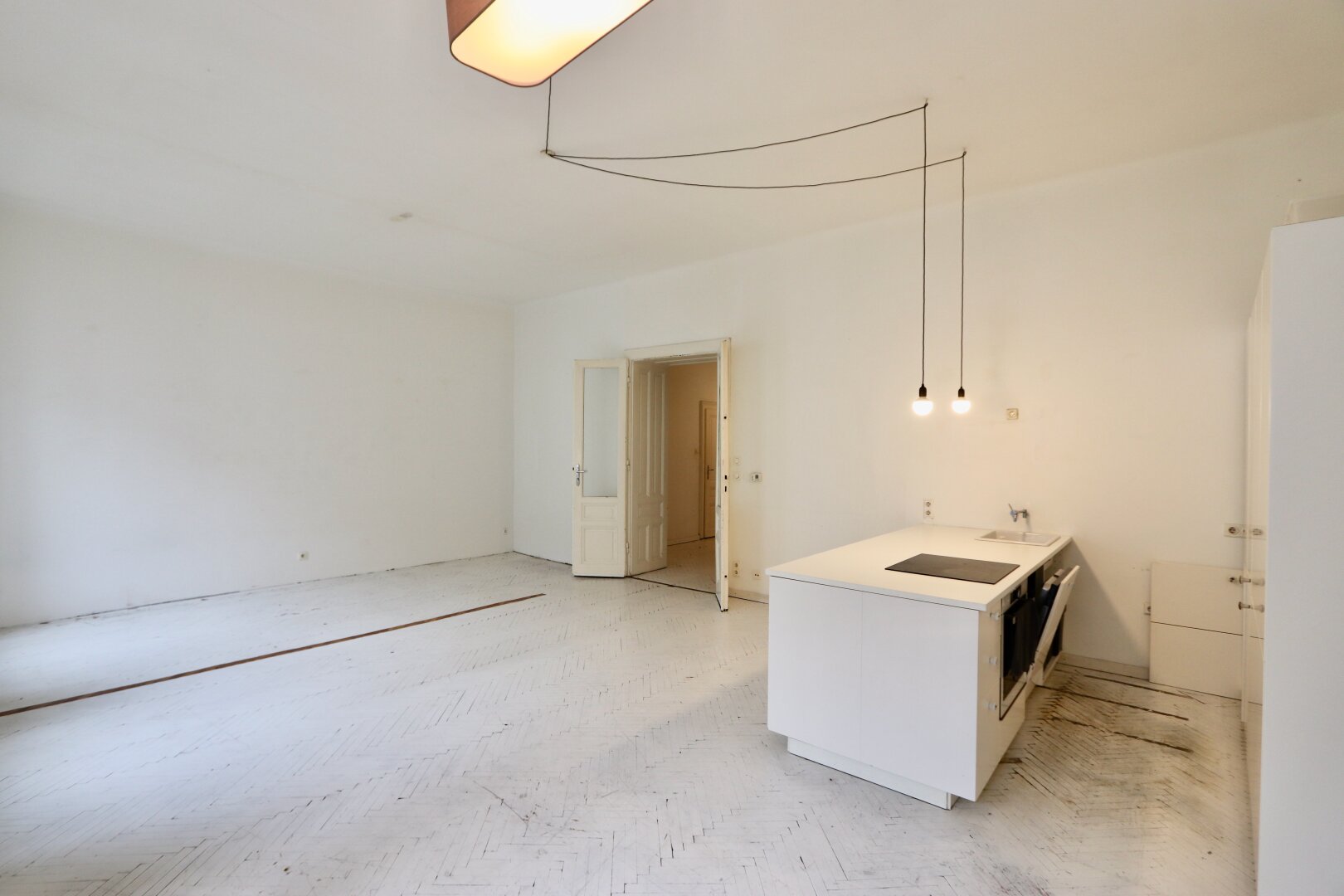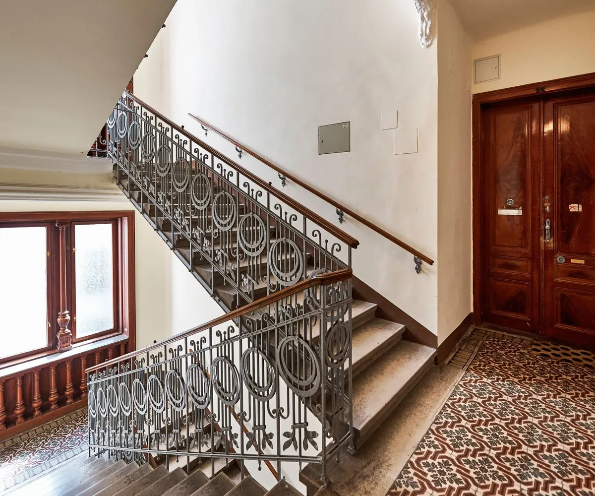 Der sanierungsbedürftige 4-Zimmer-Altbau mit ca. 124 qm Wohnfläche befindet sich im 1. Stock (entspricht der 2. Etage, da sich ein Mezzanin dazwischen befindet) und ist in den Innenhof sowie auf die Bandgasse ausgerichtet.