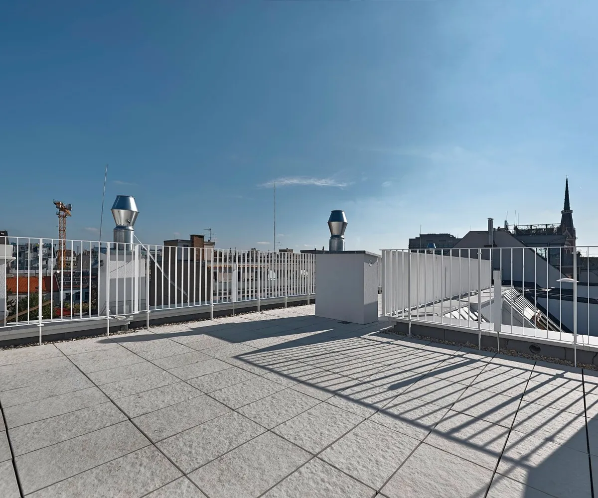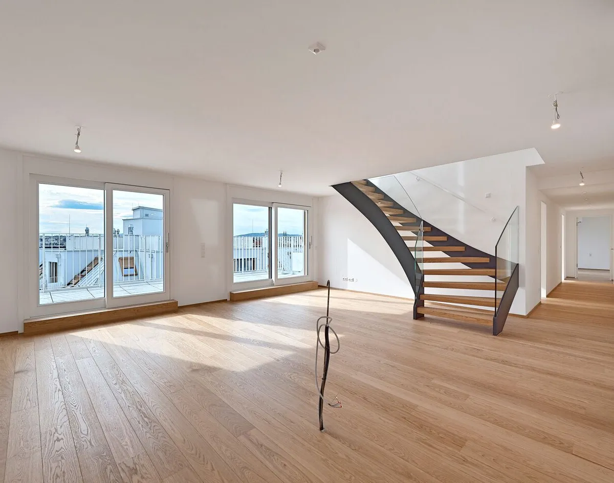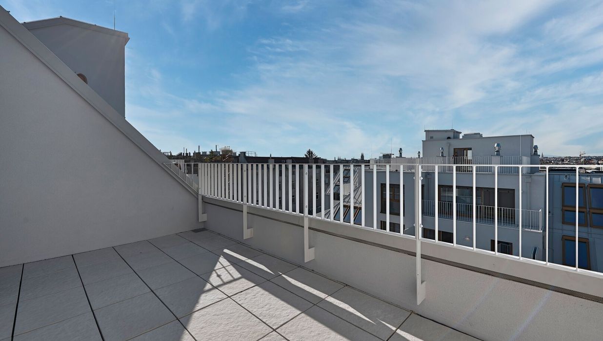 Das Penthouse mit 4 Zimmer befindet sich im 2. Dachgeschoss mit eigenem Liftzugang und bietet eine Wohnfläche von ca. 134 m² sowie zwei Terrassen und eine Dachterrasse. Die Raumaufteilung gliedert sich wie folgt: