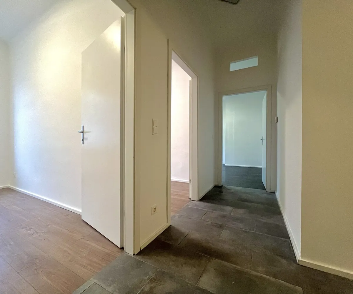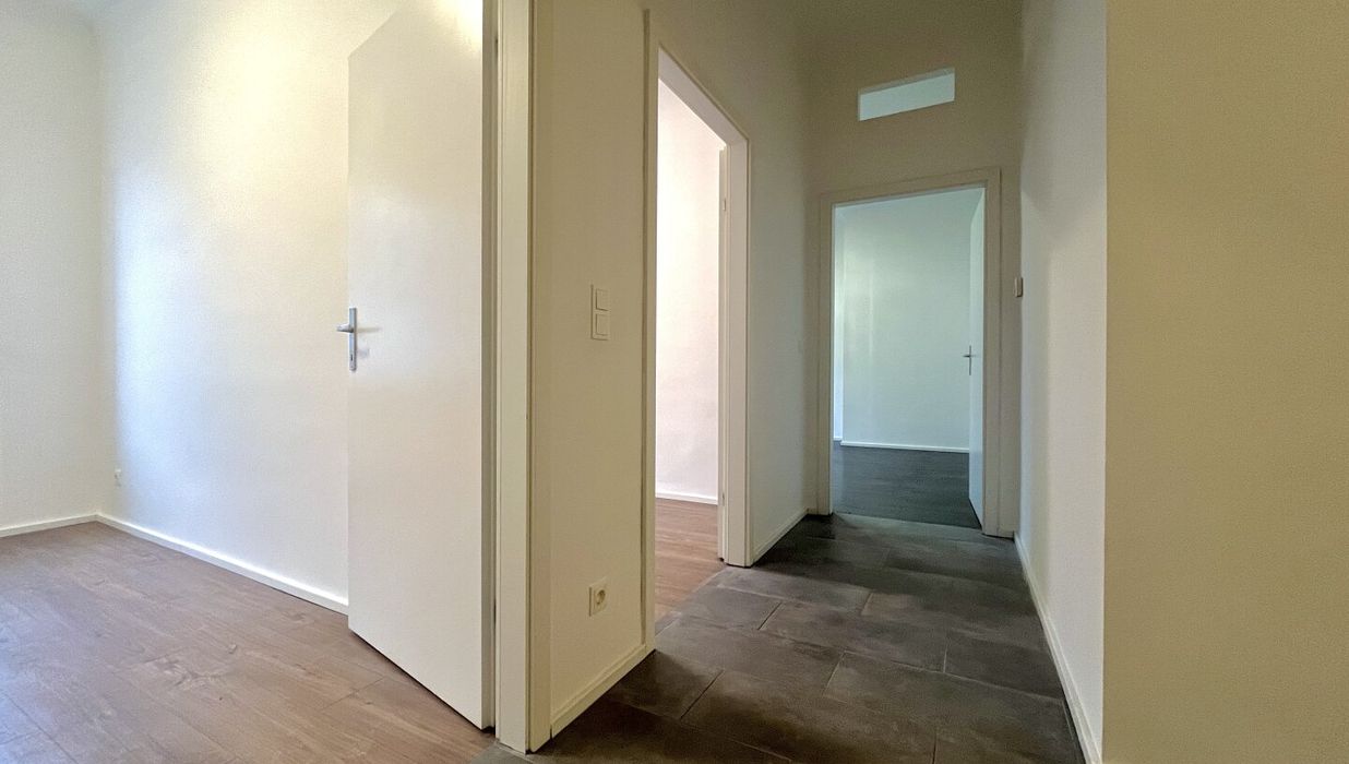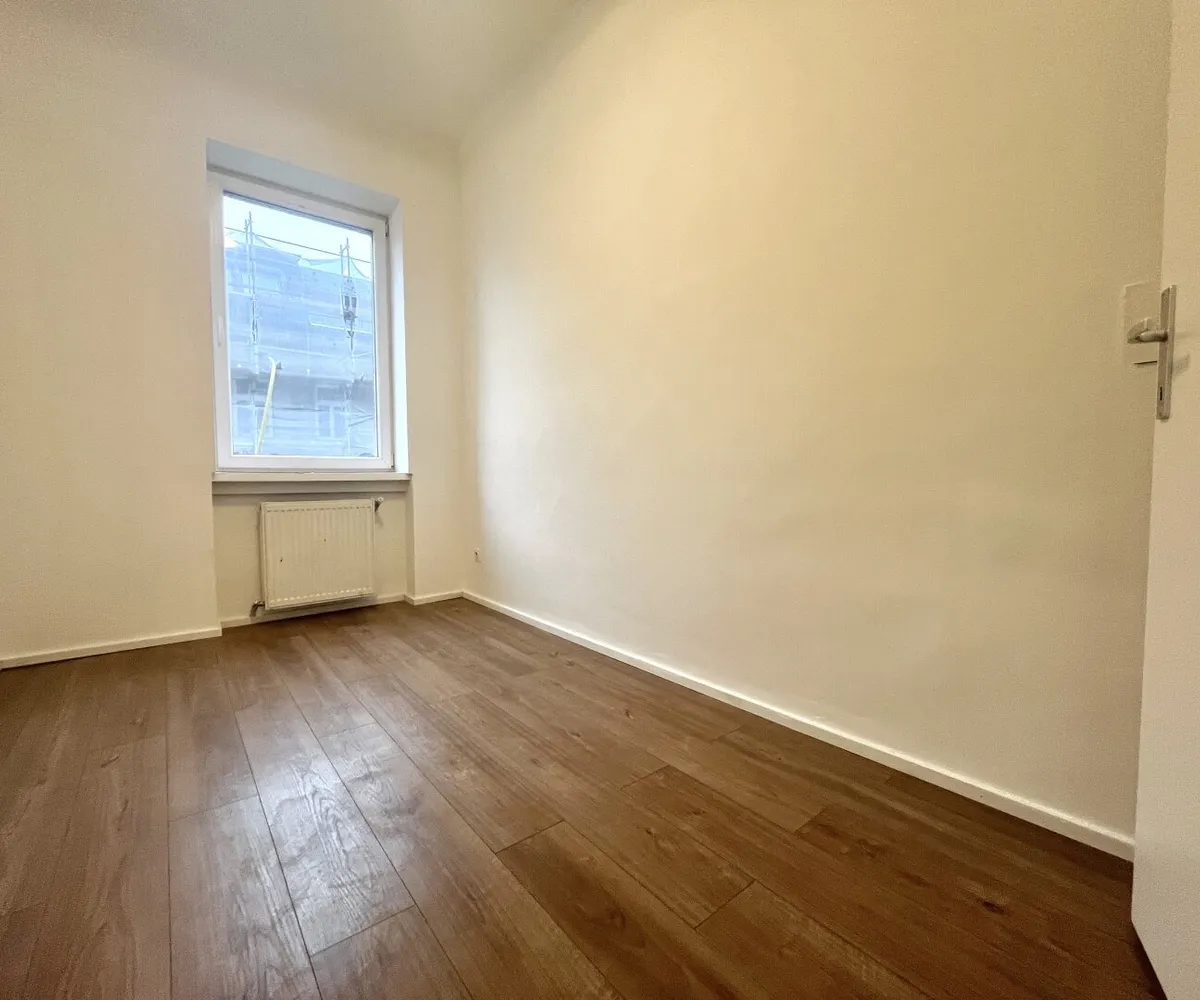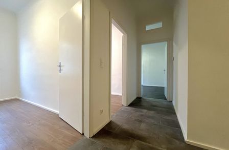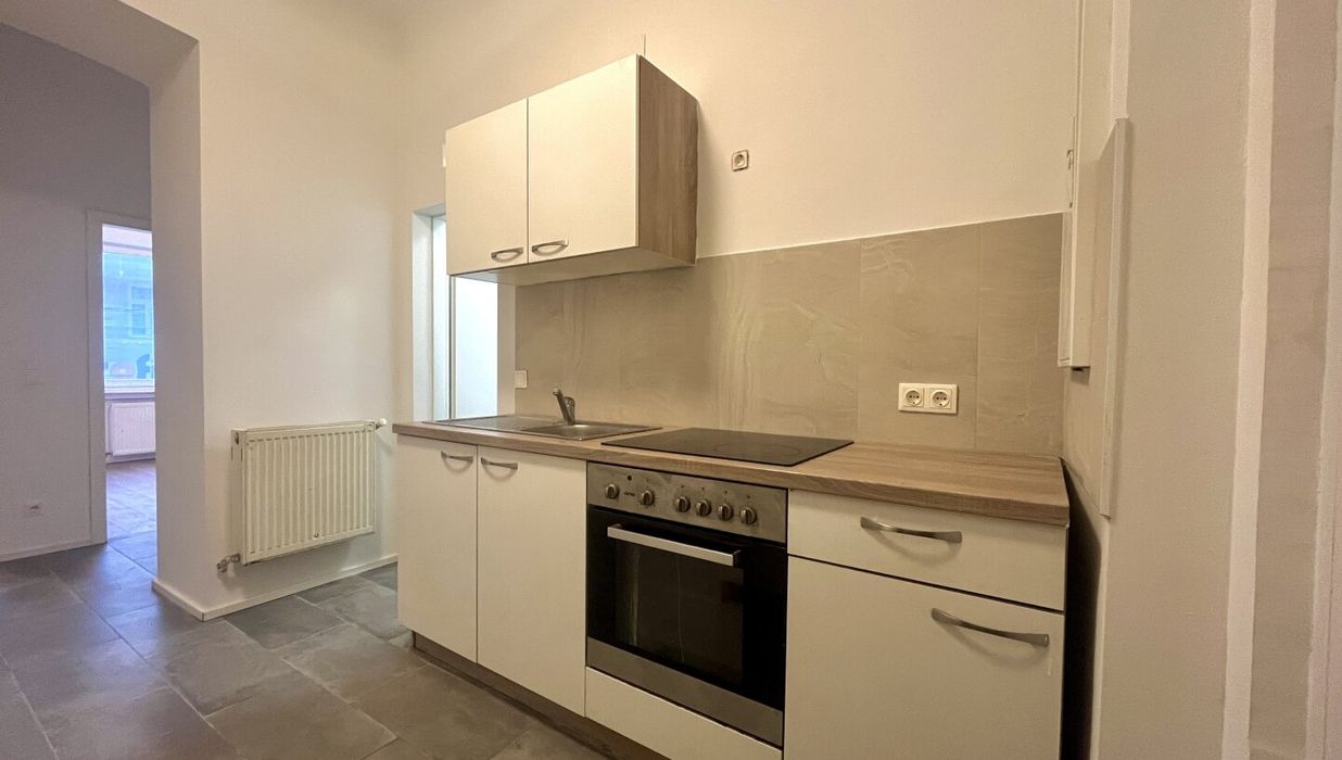 Mit insgesamt 3 Zimmern bietet diese Wohnung ausreichend Platz für individuelle Gestaltungsmöglichkeiten . Alle Zimmer sind separat vom Flur aus zugänglich , was für Privatsphäre und Flexibilität sorgt. Im großzügigen Vorraum befindet sich die Küchenzeile (Kühlschrank + Gefrierfach, Backofen, Herdplatte, Spüle), sowie der Zugang zum Badezimmer (Badewanne, Heizkörper, Waschbecken mit Unterbauschrank, LED-Spiegel). Die Wohnräume sind mit ansprechendem Laminat ausgestattet, während in Bad und WC pflegeleichte Fliesen verlegt sind.