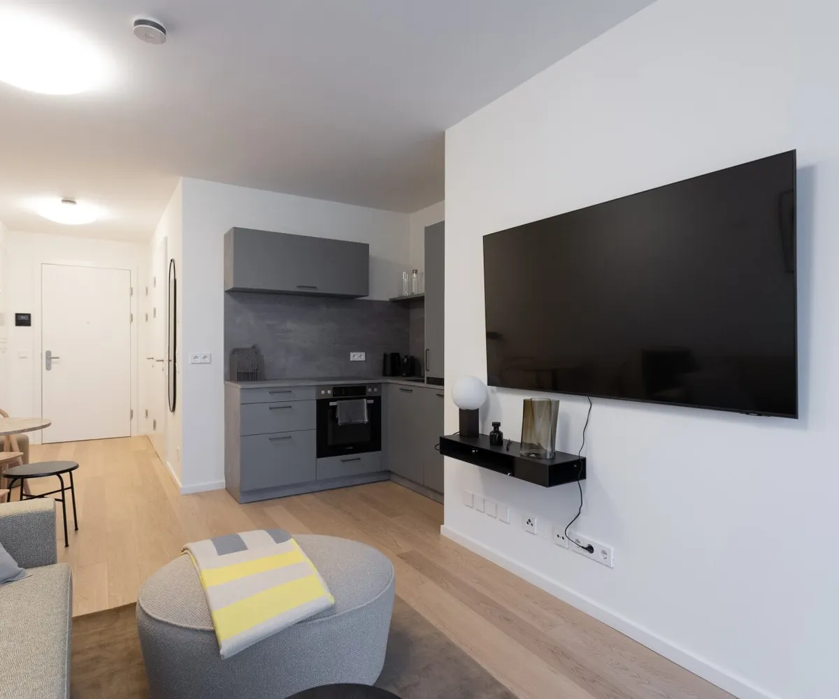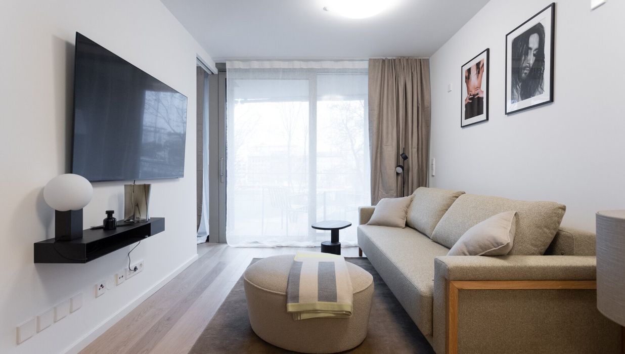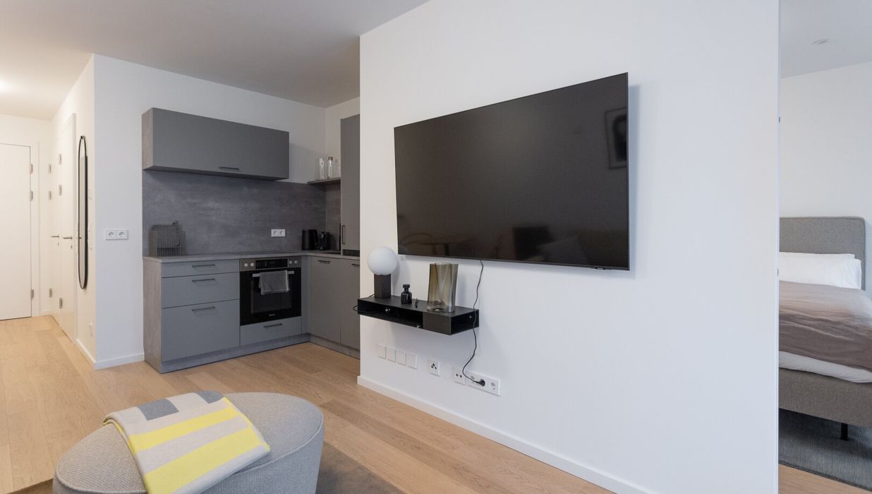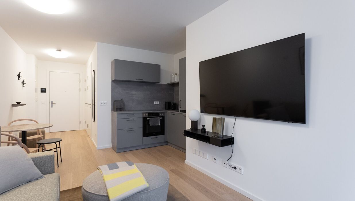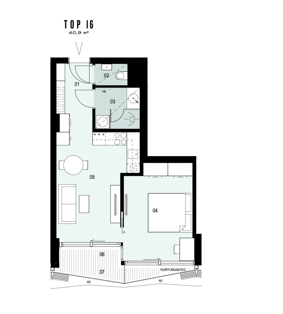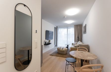 Die luxuriös ausgestaltete Einheit im zweiten Liftstock verfügt über eine Wohnfläche von ca. 41 qm und bietet eine Wohnküche inkl. vollausgestatteter Designerküche , ein Schlafzimmer mit Boxspringbett, ein traumhaftes Badezimmer (großzügige Regendusche, Waschtisch, Handtuchheizkörper, Waschmaschine), eine separate Toilette mit Handwaschbecken sowie den zentralen Vorraum . Ein zusätzliches Highlight bietet die herrliche Außenfläche (Loggia/Balkon) mit Blick auf den Donaukanal im Gesamtausmaß von ca. 4 qm . Bei der Auswahl der Einrichtung wurde auf höchste Qualität und außergewöhnliches Interiordesign wertgelegt. Das Apartment ist straßenseitig nach Nordosten orientiert.