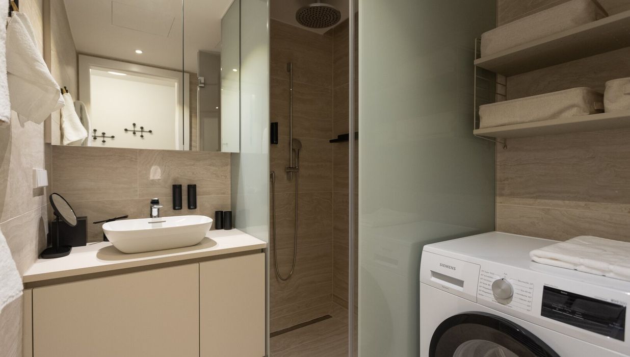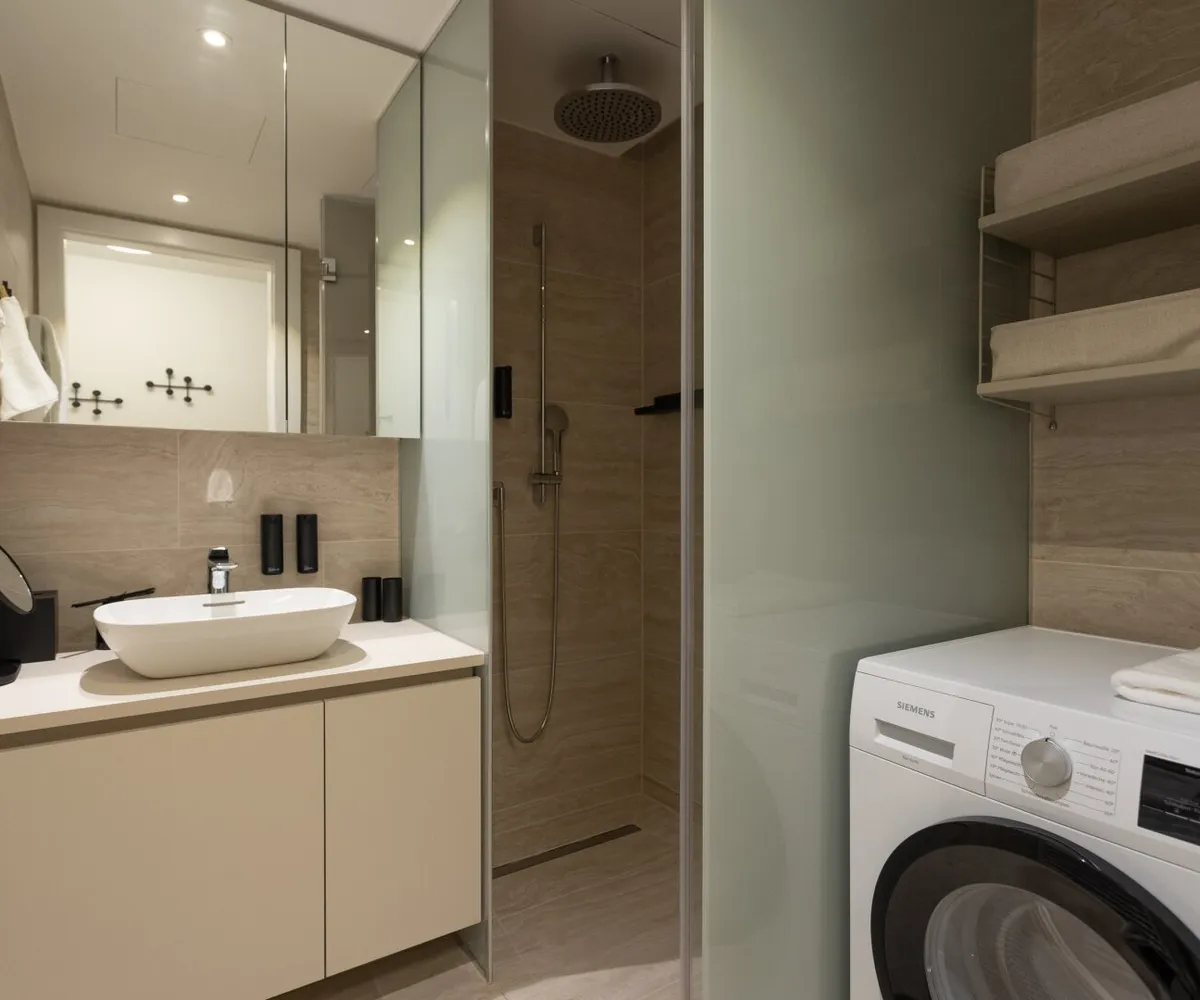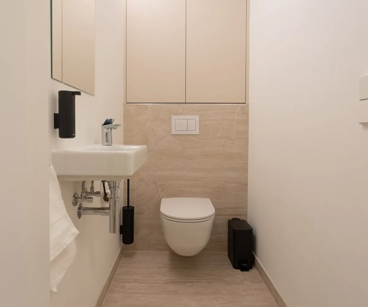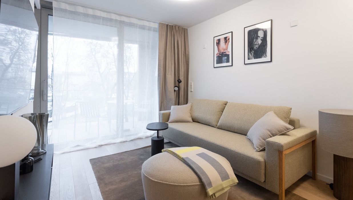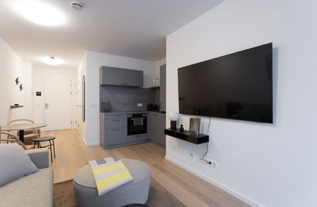 Die luxuriös ausgestaltete Einheit im zweiten Liftstock verfügt über eine Wohnfläche von ca. 41 qm und bietet eine Wohnküche inkl. vollausgestatteter Designerküche , ein Schlafzimmer mit Boxspringbett, ein traumhaftes Badezimmer (großzügige Regendusche, Waschtisch, Handtuchheizkörper, Waschmaschine), eine separate Toilette mit Handwaschbecken sowie den zentralen Vorraum . Ein zusätzliches Highlight bietet die herrliche Außenfläche (Loggia/Balkon) mit Blick auf den Donaukanal im Gesamtausmaß von ca. 4 qm . Bei der Auswahl der Einrichtung wurde auf höchste Qualität und außergewöhnliches Interiordesign wertgelegt. Das Apartment ist straßenseitig nach Nordosten orientiert.