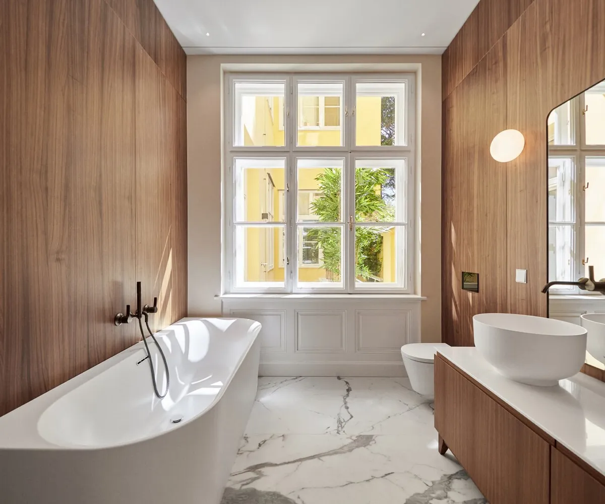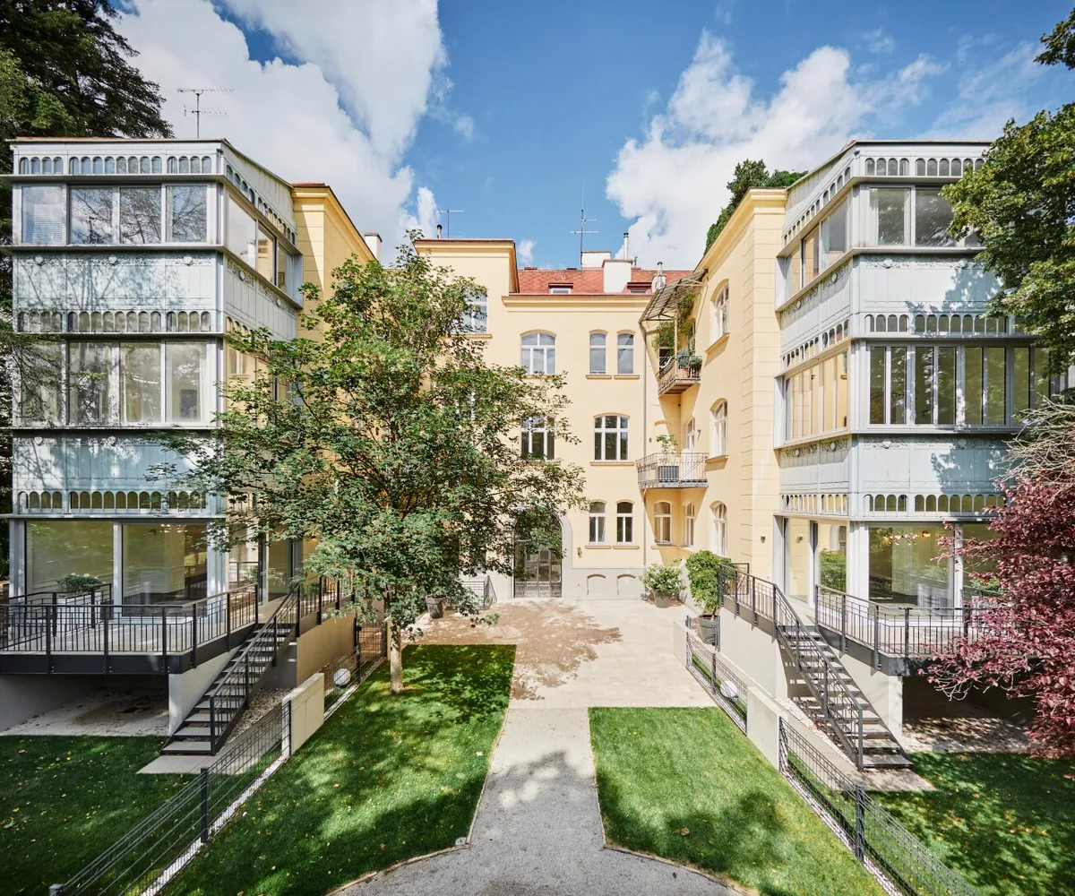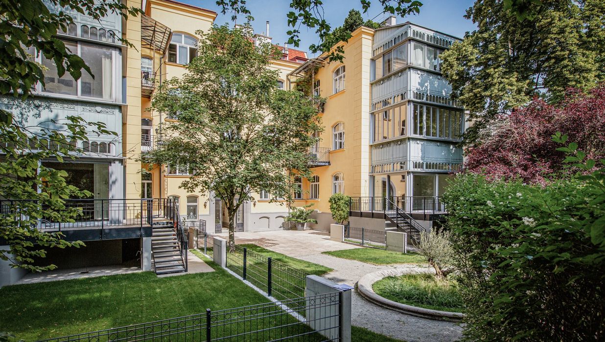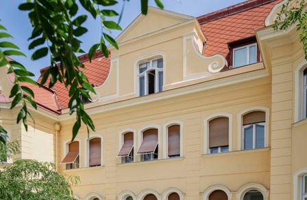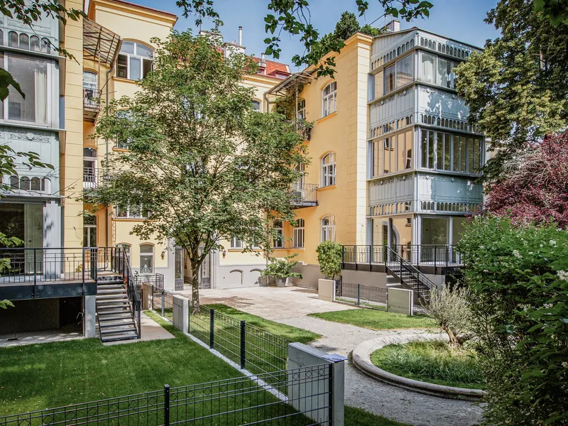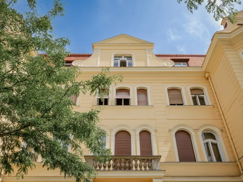 In der malerischen Kulisse der Wattmanngasse verbirgt sich ein Ort, an dem die Zeit stillzustehen scheint. Erbaut um die Jahrhundertwende, prägen gotische und klassizistische Elemente den historischen Stilaltbau in der Wattmanngasse 25. Das helle Schönbrunner Gelb und die weiß gestrichenen Faschen fügen sich zu einer prächtigen Fassade der Wiener Gründerzeit. Das 4-geschoßige Haus wurde mit Bedacht auf die Bausubstanz saniert und verzaubert mit geschwungenen Holzfenstern und Dachgiebeln im Alt-Wien-Stil. Den Auftakt der traditionellen Villa bildet das repräsentative Entrée. Der Eingangsbereich glänzt mit prachtvollem Stuck und goldenen Art-nouveau-Elementen. Die mit Ornamenten verzierten Fensterflächen im Stiegenhaus bieten einen herrlichen Blick in den wunderschönen, geschichtsträchtigen Garten des Ensembles. Darüber hinaus sorgt ein Aufzug für Barriere freien Komfort.