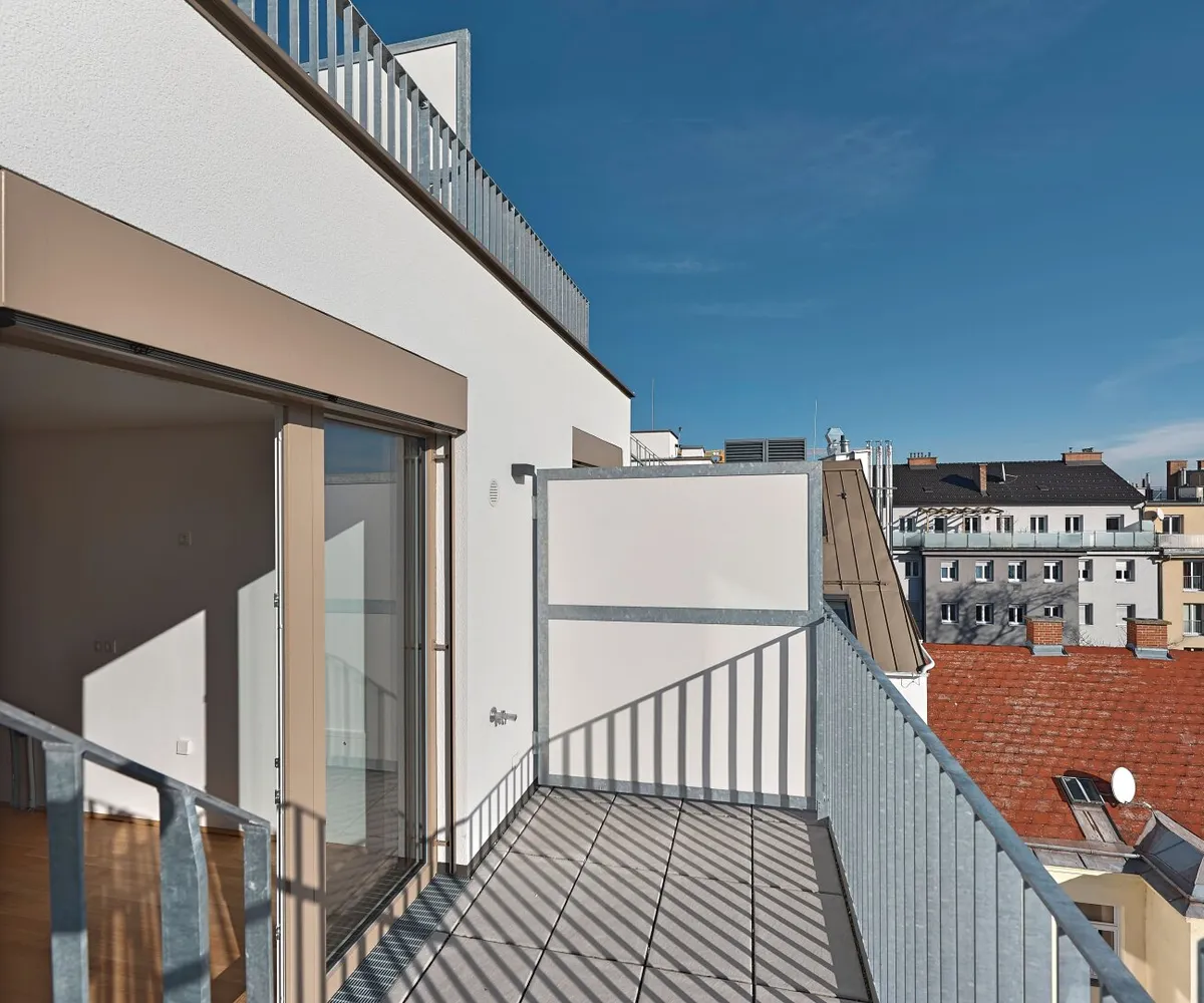 Fast alle Eigentumswohnungen verfügen über attraktive Freiflächen wie Balkone, Loggia, Terrassen oder Eigengärten. Über den Wohnungen im Erdgeschoss mit schönen Eigengärten entstehen auf 4 Obergeschoßen klug angelegte Wohneinheiten mit je 1 bis 4 Zimmern und Größen von ca. 35 bis 135 m². Die Wohnungen bieten entweder einen straßenseitigen- oder hofseitigen Blick und einen Freibereich in Form von Balkon, Loggia oder Terrasse. Den krönenden Abschluss bilden 2 attraktive Dachgeschossebenen, diese Wohnungen bieten Terrassen bzw. auch privaten Dachterrassen und einen schönen Ausblick.
