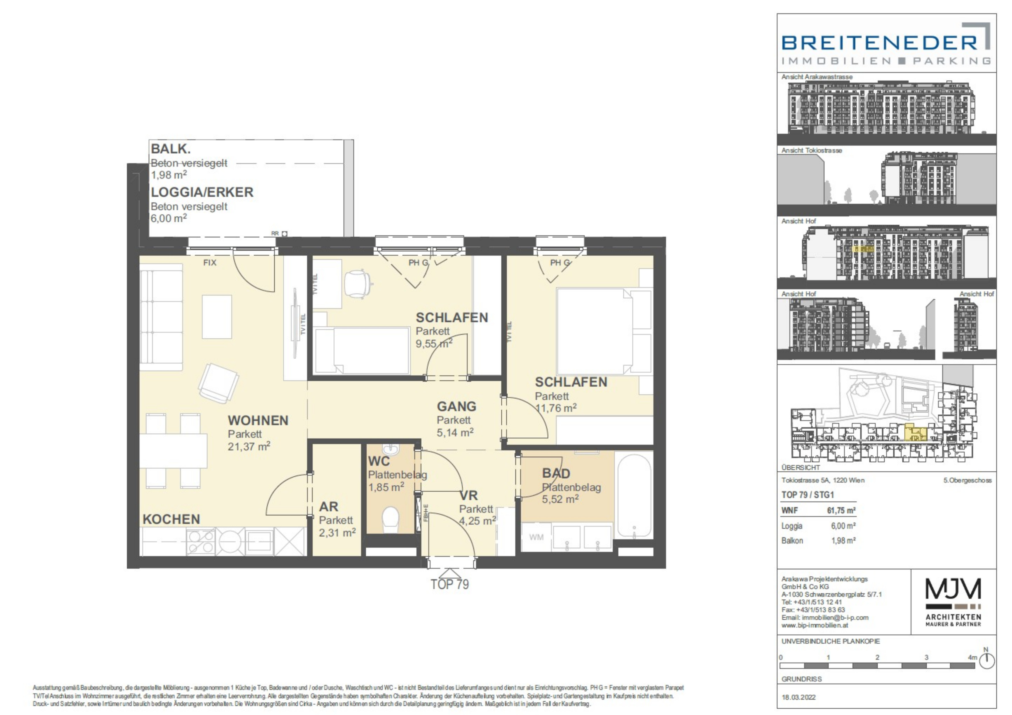 In jeder Wohnung wird eine Küche eingebaut, welche um € 10.800,- anzukaufen ist. Bei Wohnungen mit einem zugeteilten Stellplatz ist dieser um € 28.600,- zu erwerben.