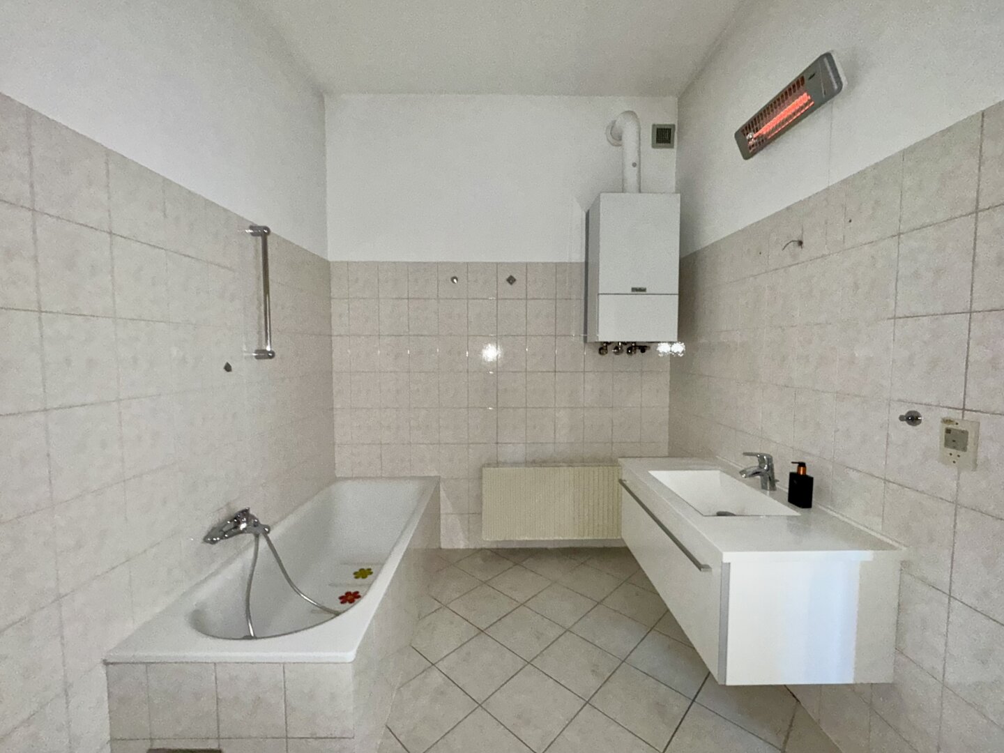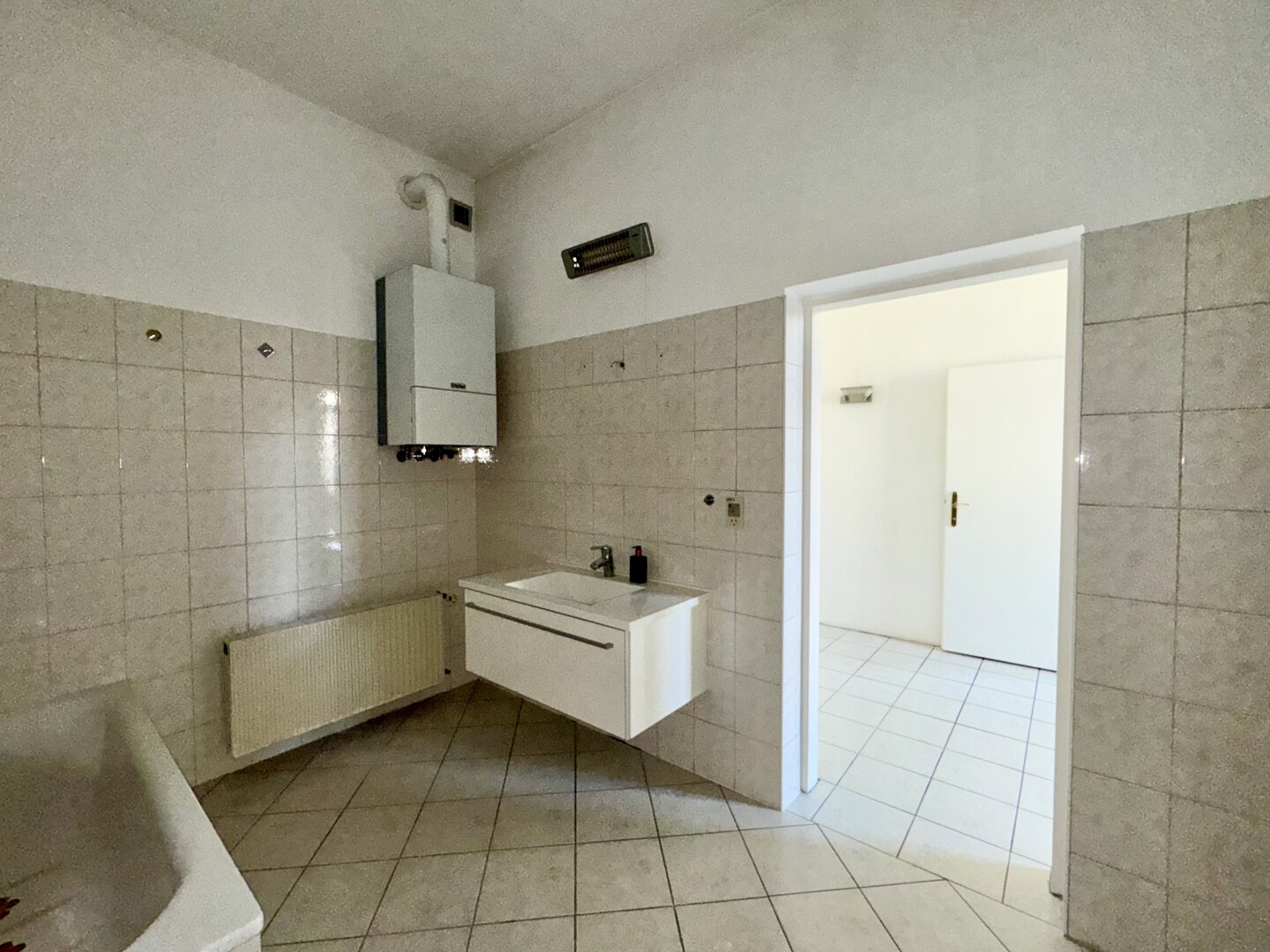 - geräumiges Badezimmer mit Wanne