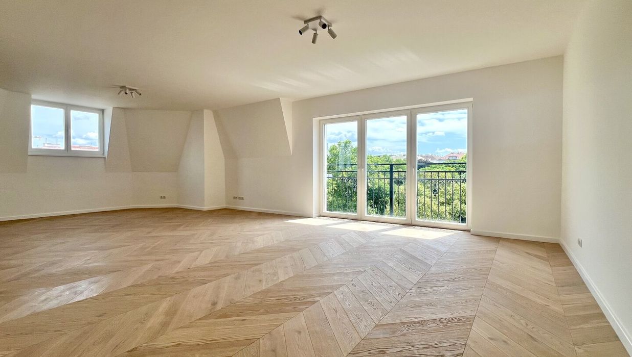 Aktuell stehen 5 exklusive Wohnungen zum Verkauf mit Größen zwischen 24 und 116 Quadratmetern. Sonnige Aussichten garantiert der wunderschöne Blick in den Park mit viel Grün und altem Baumbestand welcher für ein Mehr an Lebensqualität sorgt. Jede Wohnung glänzt durch eine erstklassige Ausstattung, welche den anspruchsvollen Lebensstil seiner Bewohner hervorhebt. Vom edlen Fußboden im französischem Fischgrät-Muster über Stiltüren "Alt-Wien" bis hin zu luxuriösen Bädern. Diese setzen elegante Statements: Design-Armaturen, Regenduschen und ein in die Decke integriertes Musiksystem machen das luxuriös ausgestattete Bad zur Wellnessoase. Perfektioniert wird die zeitgemäße Ausstattung mit einem Aufzug, der die Regel- und Dachgeschoße komfortabel erschließt. Manche Wohnungen sind mit Balkonen ausgestattet, welche zum Verweilen mit wunderbaren Blick ins Grüne einladen.