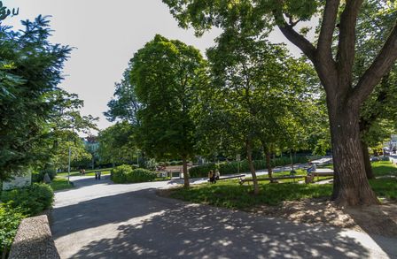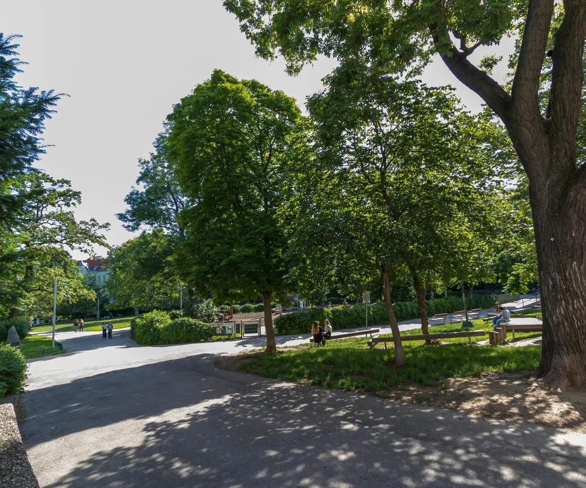 Direkt gegenüber befindet sich der Schubertpark mit herrlichem Altbaumbestand