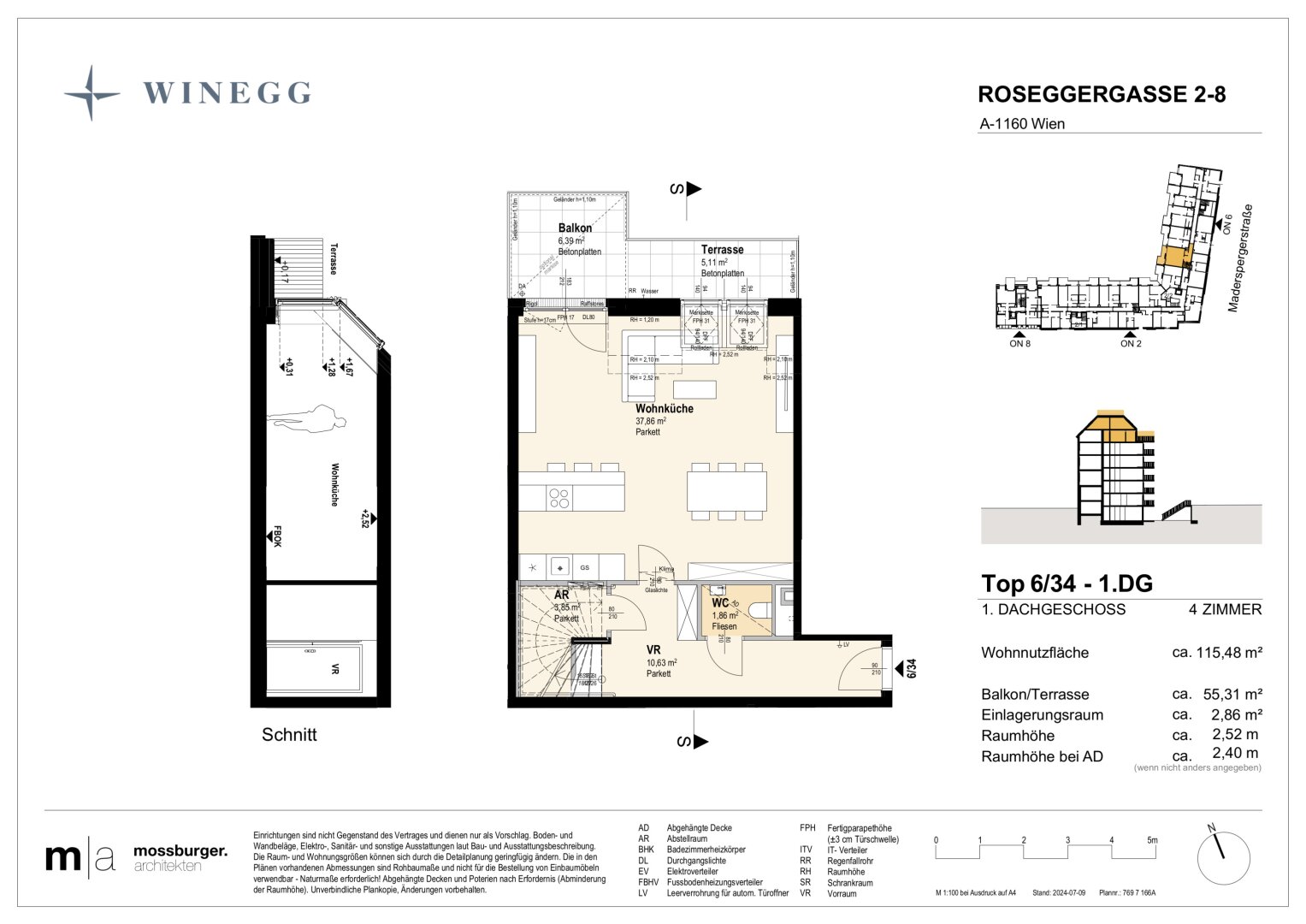 In der Roseggergasse 2–8, nahe des Wilhelminenbergs in 1160 Wien, entstehen insgesamt 124 exklusive Eigentumswohnungen. Die Wohnflächen variieren zwischen 39 und 245 m² und bieten zwischen 2 und 6 Zimmern. Darüber hin-aus bereichern private Freibereiche wie Eigengärten, Balkone, Terrassen, Loggien und spektakuläre Dachterrassen mit Blick auf die umliegenden Wiener Berge das Wohnerlebnis.