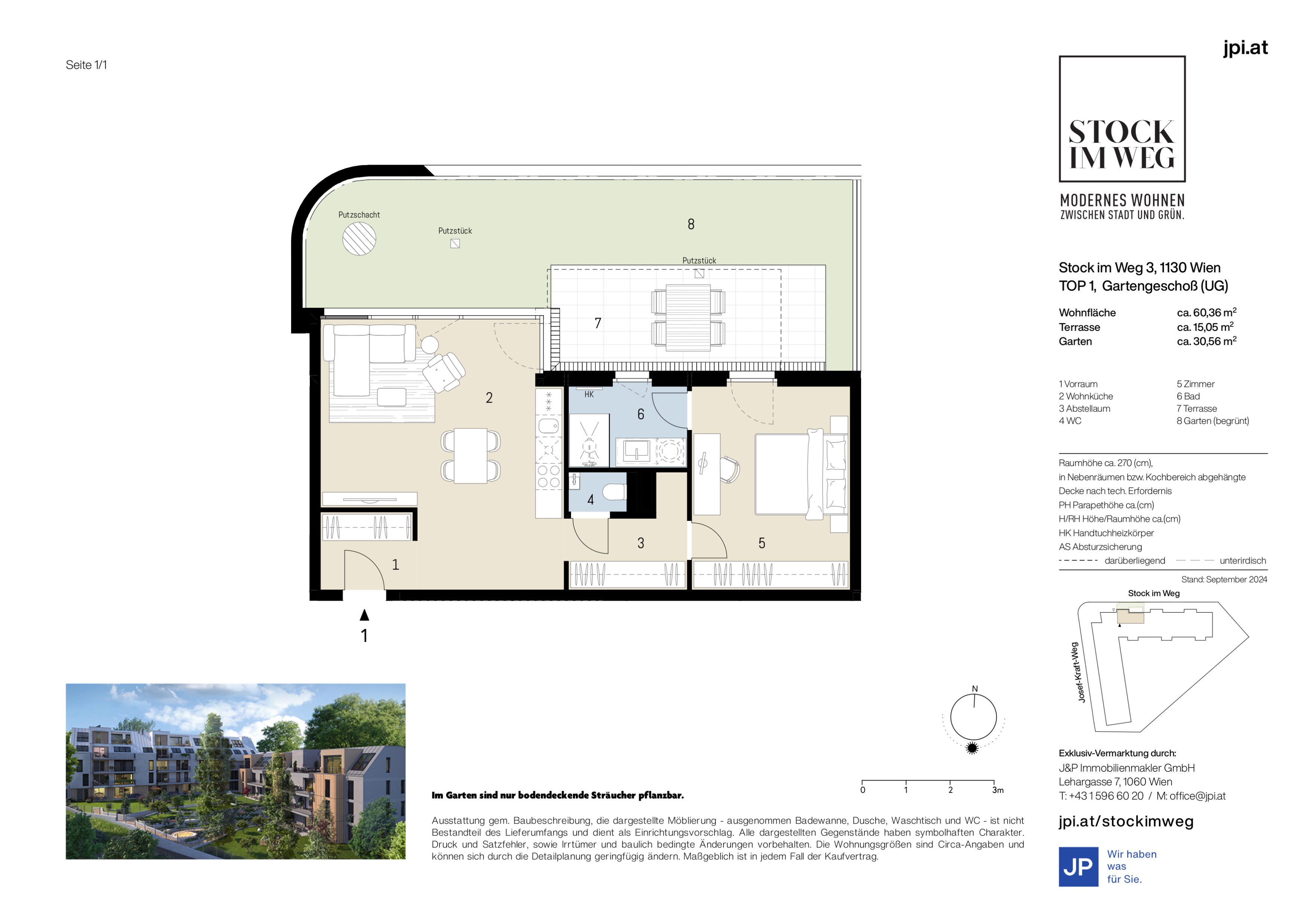 Das Neubauprojekt "Stock im Weg" bietet eine hervorragende Investmentmöglichkeit in einer der begehrtesten Wohnlagen Wiens. In drei modernen Wohngebäuden entstehen insgesamt 41 hochwertige Eigentumswohnungen mit Wohnflächen zwischen 45 und 150 m². Die 2- bis 5-Zimmer-Wohnungen verfügen über großzügige Freiflächen, eine nachhaltige Bauweise mit Erdwärme und Photovoltaikanlage sowie exklusive Ausstattungsdetails. Die stilvolle Fassadengestaltung mit Holzelementen verleiht dem Projekt eine zeitlose Eleganz.