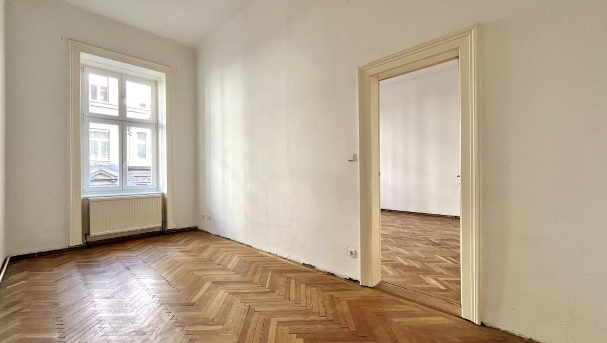Zwei Zimmer sind straßenseitig nach Osten orientiert, was für einen wunderbaren natürlichen Lichteinfall in der Wohnung sorgt und das große Schlafzimmer richtet sich dem ruhigen Innenhof.