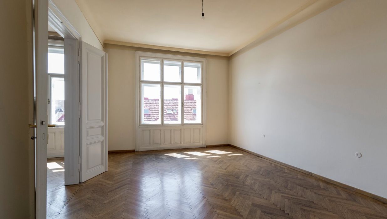 Die Drei-Zimmer-Altbauwohnung befindet sich im 3. Obergeschoß, verfügt über ca. 107 qm Wohnfläche und ist straßenseitig nach Südosten ausgerichtet.