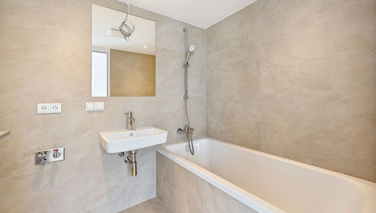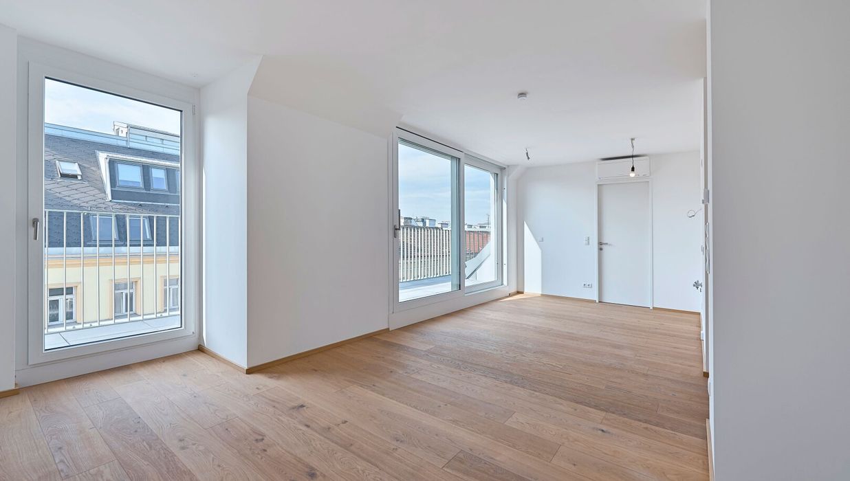 Die modernen Wohneinheiten sind mit Parkett und Fußbodenheizung ausgestattet. Das sorgt nicht nur für warme Füße, auch die Energiekosten können dank Fernwärme gesenkt werden. Außenliegender, elektrisch gesteuerter Sonnenschutz und Klimaanlagen im Dachgeschoß versprechen perfekt temperierte Sommertage. Die hochwertig ausgestatteten Bäder wurden als wahre Wohlfühlzonen konzipiert. Eine perfekte Symbiose aus Funktionalität und Design verstärkt dabei den Wellness-Faktor.