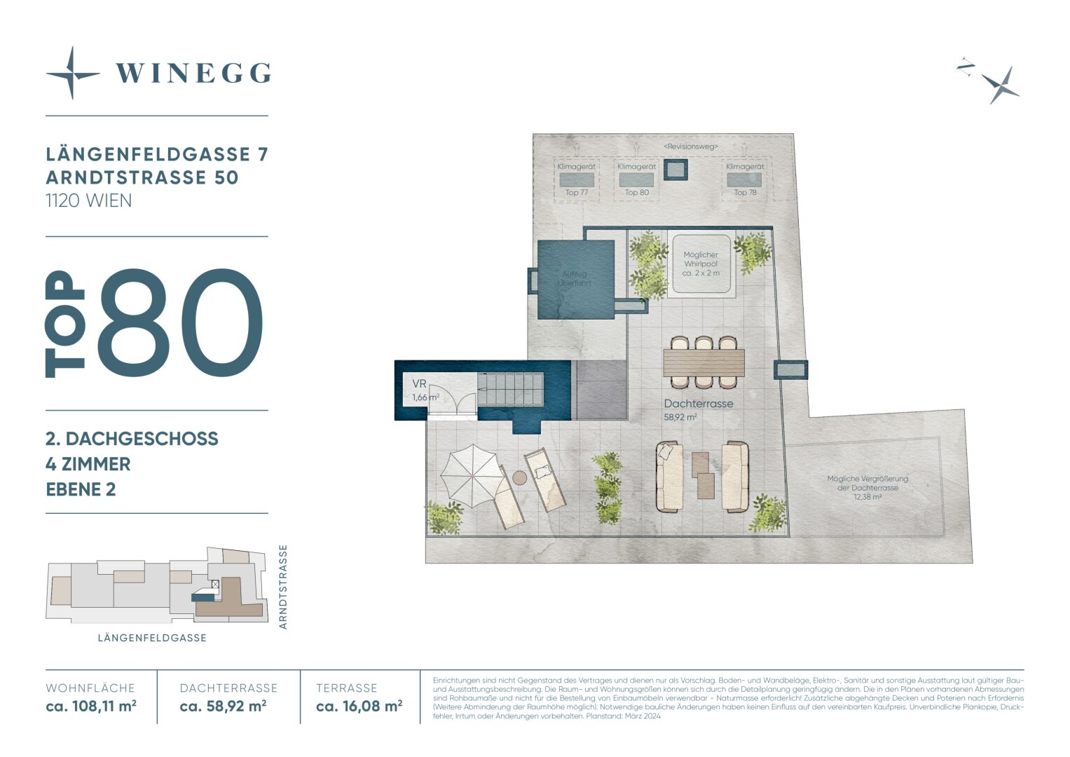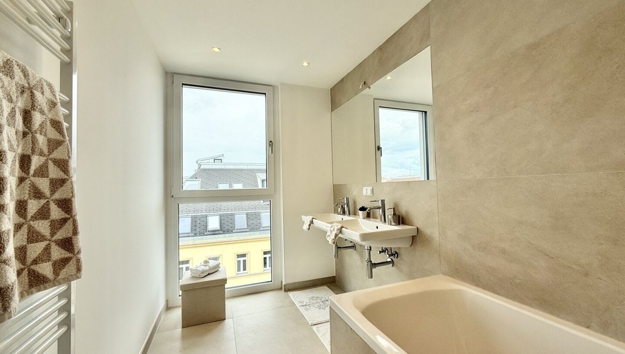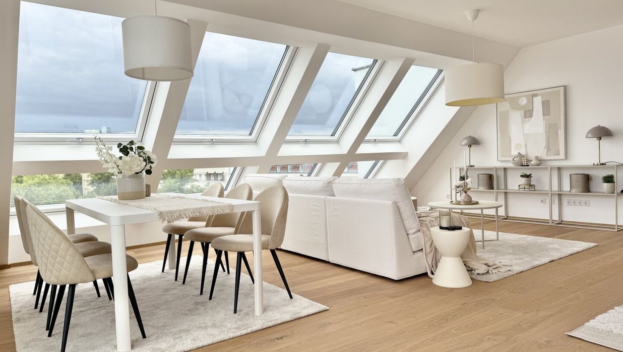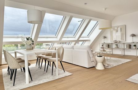 Mit einer großzügigen Wohnfläche von 108 m² und zwei herrlichen Außenbereichen ist diese Wohnung ein wahrer Traum für anspruchsvolle Bewohner. Die Dachterrasse erstreckt sich über großzügige 59 m², während eine weitere Terrasse mit 16 m² zusätzlichen Raum für Entspannung und Genuss bietet.