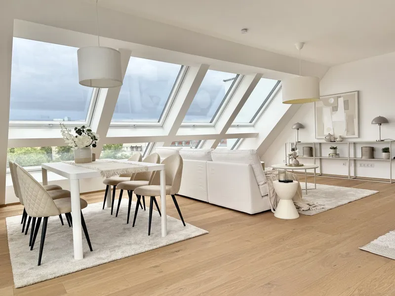 Das spektakuläre Penthouse im Neubauprojekt Fahrbachgasse 6-8 in Meidling erhebt sich über den Dächern der Stadt und bietet ein unvergleichliches Wohngefühl für anspruchsvolle Bewohner. Vereint mit seiner erstklassigen Lage im zukunftsweisenden Wohnprojekt in Meidling, verspricht es luxuriöse Lebensqualität gepaart mit urbaner Raffinesse. Das Herzstück dieses außergewöhnlichen Penthouse ist zweifellos die atemberaubende Panoramaaussicht, die sich über die Stadt erstreckt und jeden Tag mit neuen Impressionen begeistert. Von der großzügigen Terrasse und der Dachterrasse aus können Bewohner den Blick über die Dächer von Wien schweifen lassen und dabei das pulsierende Leben der Stadt genießen.