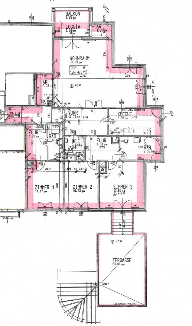 2 weitere Schlafzimmer, 2 Bäder und Toiletten sowie 2 Abstellräume runden das extravagante Angebot ab.