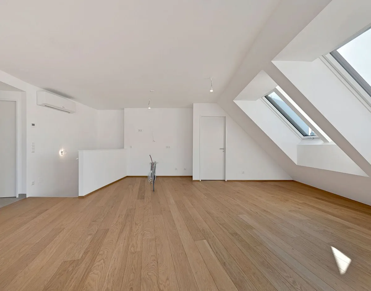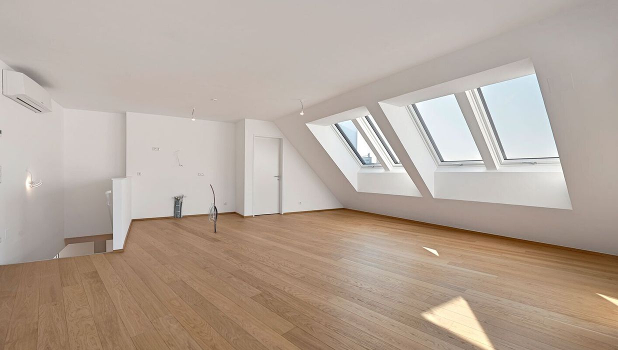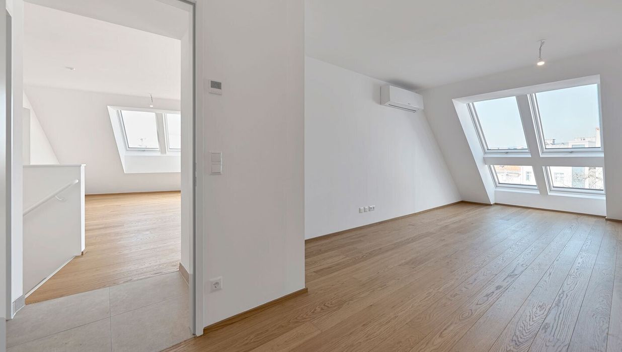 Die 3-Zimmer-Maisonette ist aufgeteilt auf 2 Ebenen im 1. und 2. Dachgeschoss und bietet eine großzügige Wohnfläche von ca. 120 m², zwei Terrassen (4 und 11m²) und einen Balkon (9 m²). Die Raumaufteilung gliedert sich wie folgt: