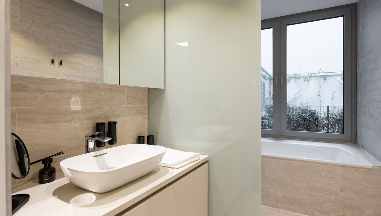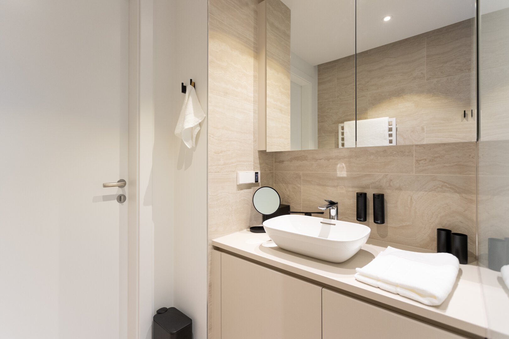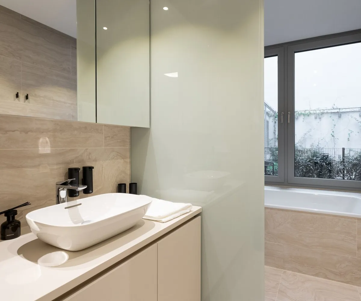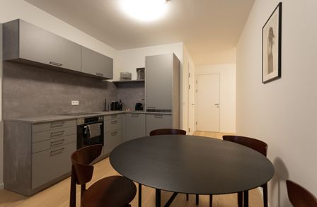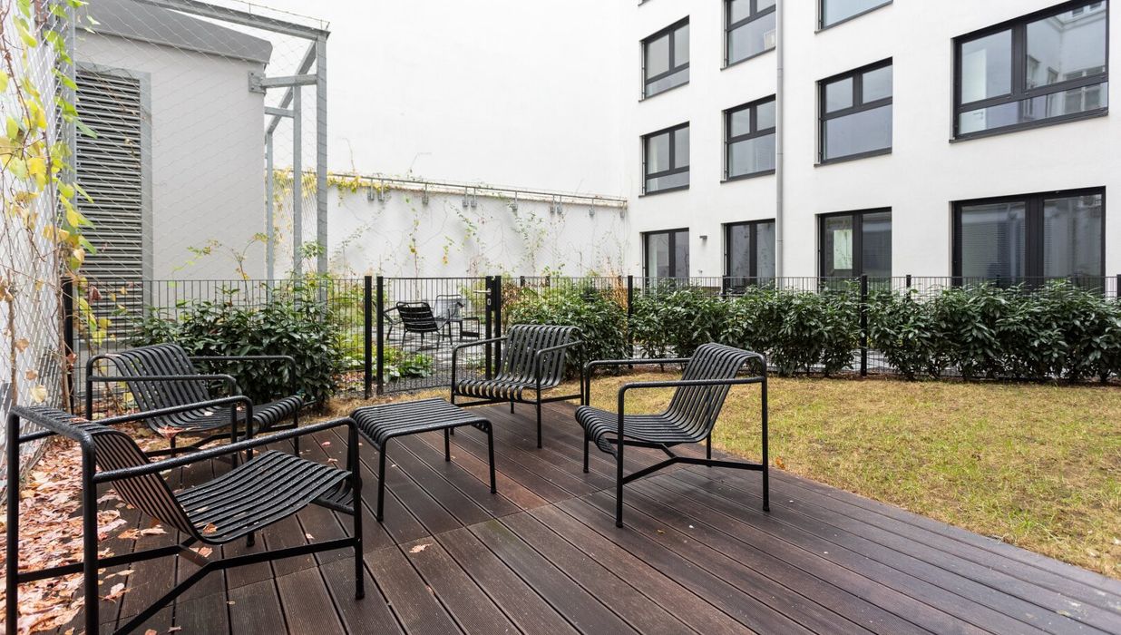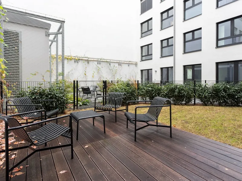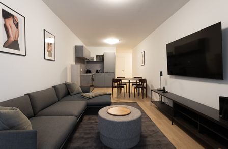 Die luxuriös ausgestaltete 3-Zimmer-Einheit im ersten Liftstock verfügt über eine Wohnfläche von ca. 62 qm sowie eine straßenseitige Loggia mit ca. 4 qm und einen Gartenbereich (ca. 39 qm) im Innenhof . Über den Vorraum sind alle Zimmer zentral begehbar : die Wohnküche inklusive vollausgestatteter Designerküche sowie gemütlicher Couchecke mit TV-Gerät , zwei hofseitige Schlafzimmer mit Boxspringbett und Zugang zur Terrasse , ein traumhaftes Badezimmer mit Fenster (Walk-In-Dusche, Badewanne, Waschtisch, Handtuchheizkörper) sowie die separate Toilette mit Handwaschbecken. Bei der Auswahl der Einrichtung wurde auf höchste Qualität und außergewöhnliches Interiordesign wertgelegt. Das Apartment ist in den Innenhof sowie auf die Werdertorgasse ausgerichtet.