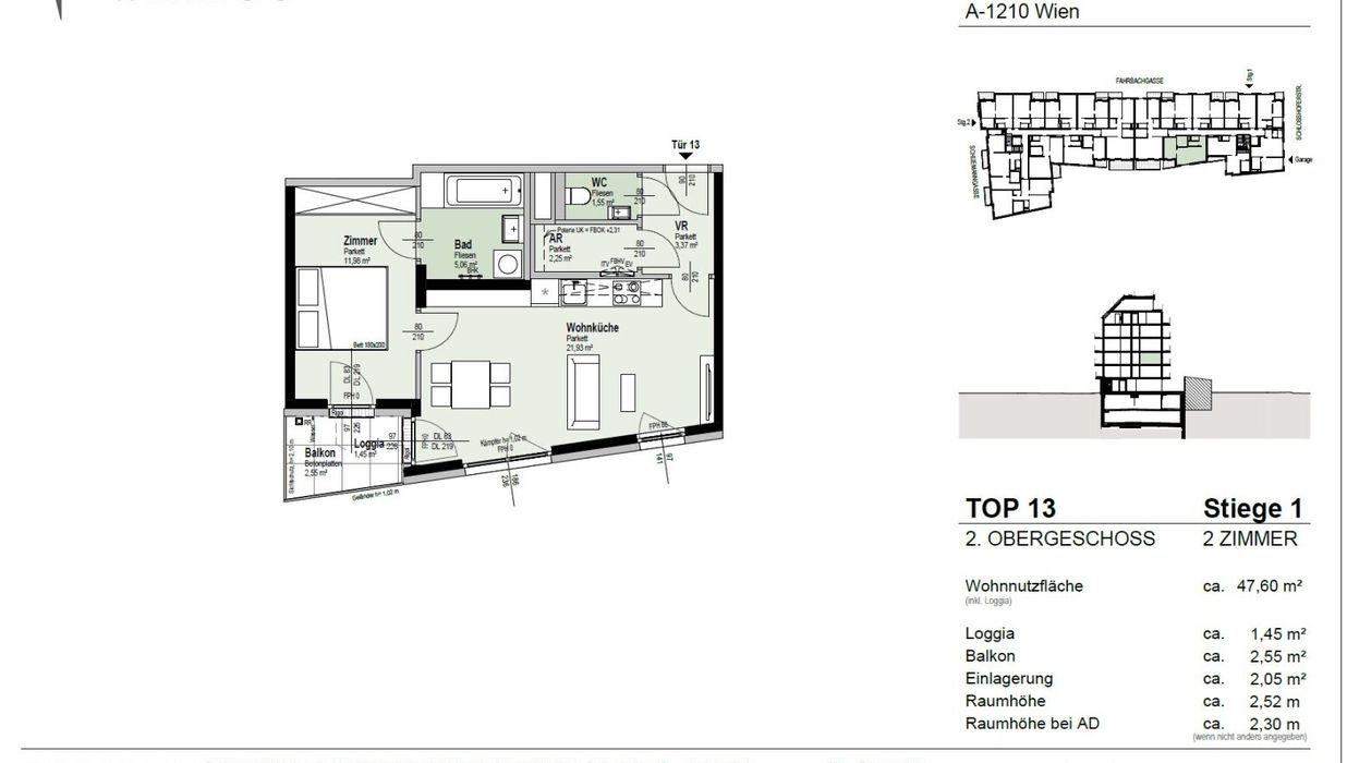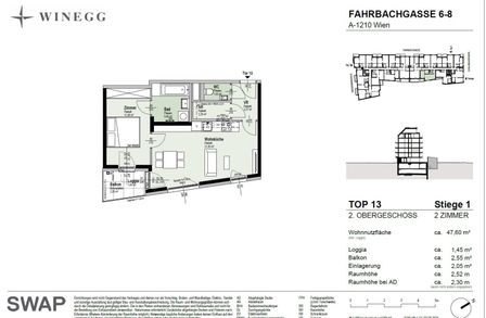 Das zukunftsweisende Wohnprojekt in der Fahrbachgasse 6–8 verbindet urbanes Wohnen mit der Möglichkeit zum Rückzug ins Grüne. Im zentral gelegenen Teil von Floridsdorf entstehen 92 moderne Eigentumswohnungen auf 2 Stiegen verteilt (Schliemanngasse 1 & Schloßhofer Straße 22) mit Wohnflächen von ca. 35 bis 138 m². Der vielfältige Wohnungsmix beweist viel Liebe zum Detail und bietet reichlich Raum für unterschiedliche Lebenskonzepte: Genießen Sie den Luxus zukunftsweisender Wohnplanung, perfekt zugeschnitten auf all Ihre Wünsche. Die Ausstattung folgt nicht nur gestalterischen Kriterien. Vielmehr wird auf die Verwendung von langlebigen und qualitätsvollen Materialien aus Österreich geachtet.