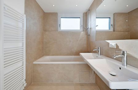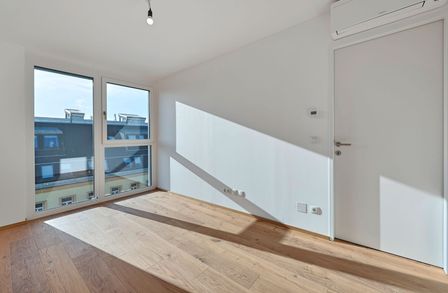 Die modernen Wohneinheiten sind mit Parkett und Fußbodenheizung ausgestattet. Das sorgt nicht nur für warme Füße, auch die Energiekosten können dank Fernwärme gesenkt werden. Außenliegender, elektrisch gesteuerter Sonnenschutz und Klimaanlagen im Dachgeschoß versprechen perfekt temperierte Sommertage. Die hochwertig ausgestatteten Bäder wurden als wahre Wohlfühlzonen konzipiert. Eine perfekte Symbiose aus Funktionalität und Design verstärkt dabei den Wellness-Faktor.