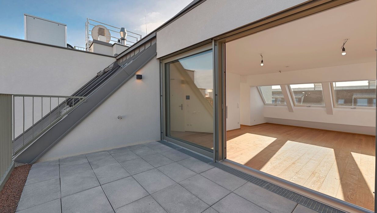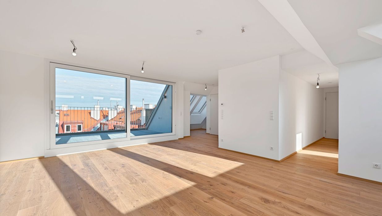 Die 3-Zimmer-Wohnung mit ca. 80 m² Wohnnutzfläche sowie einer Terrasse befindet sich im 2. Dachgeschoss.