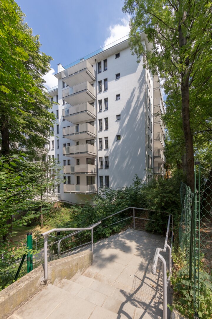 und die Fenster erneuert (3-fach Isolierverglasung). Die Arbeiten umfassten auch die Revitalisierung von Stiegenhaus und der Tiefgaragen. Die meisten Wohnungen wurden auch einer hochwertigen Generalsanierung unterzogen.