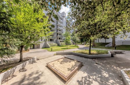 und die Fenster erneuert (3-fach Isolierverglasung). Die Arbeiten umfassten auch die Revitalisierung von Stiegenhaus und der Tiefgaragen. Die meisten Wohnungen wurden auch einer hochwertigen Generalsanierung unterzogen.