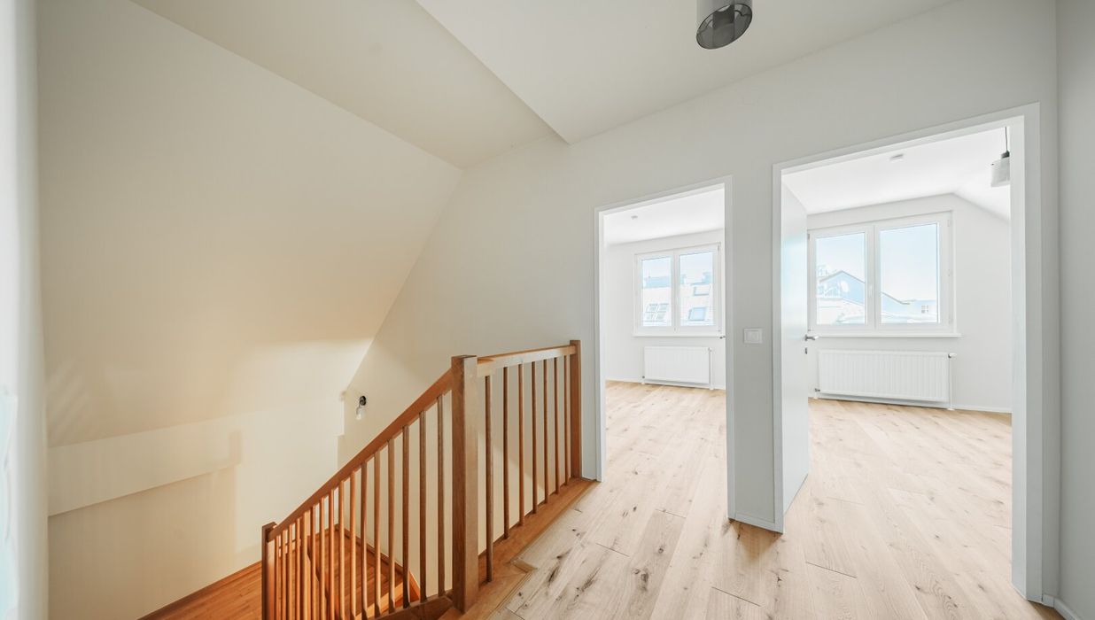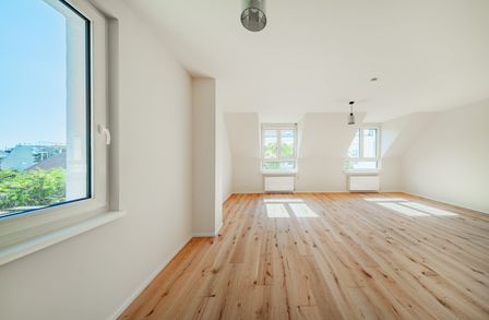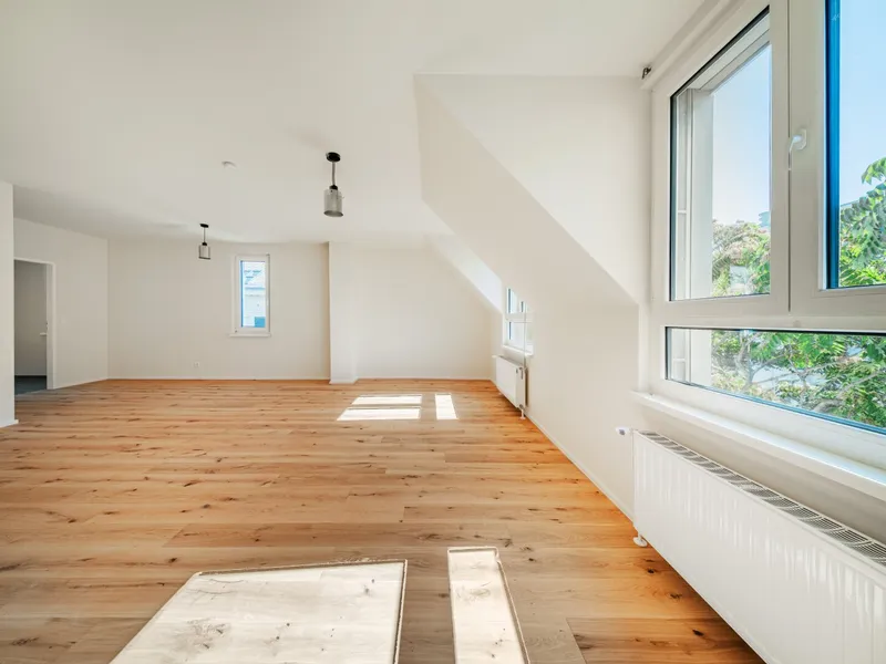 Diese sonnige und geräumige 3,5 Zimmer Dachgeschosswohnung mit ca. 120 m² , erstreckt sich über 2 Ebenen :