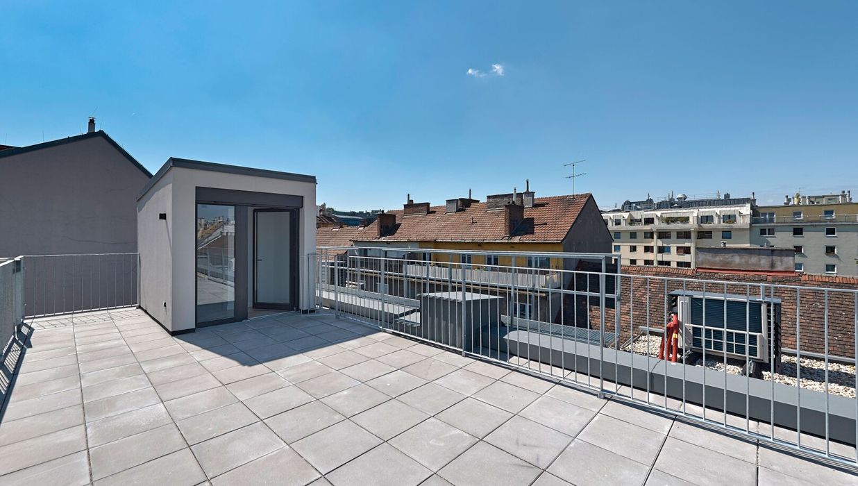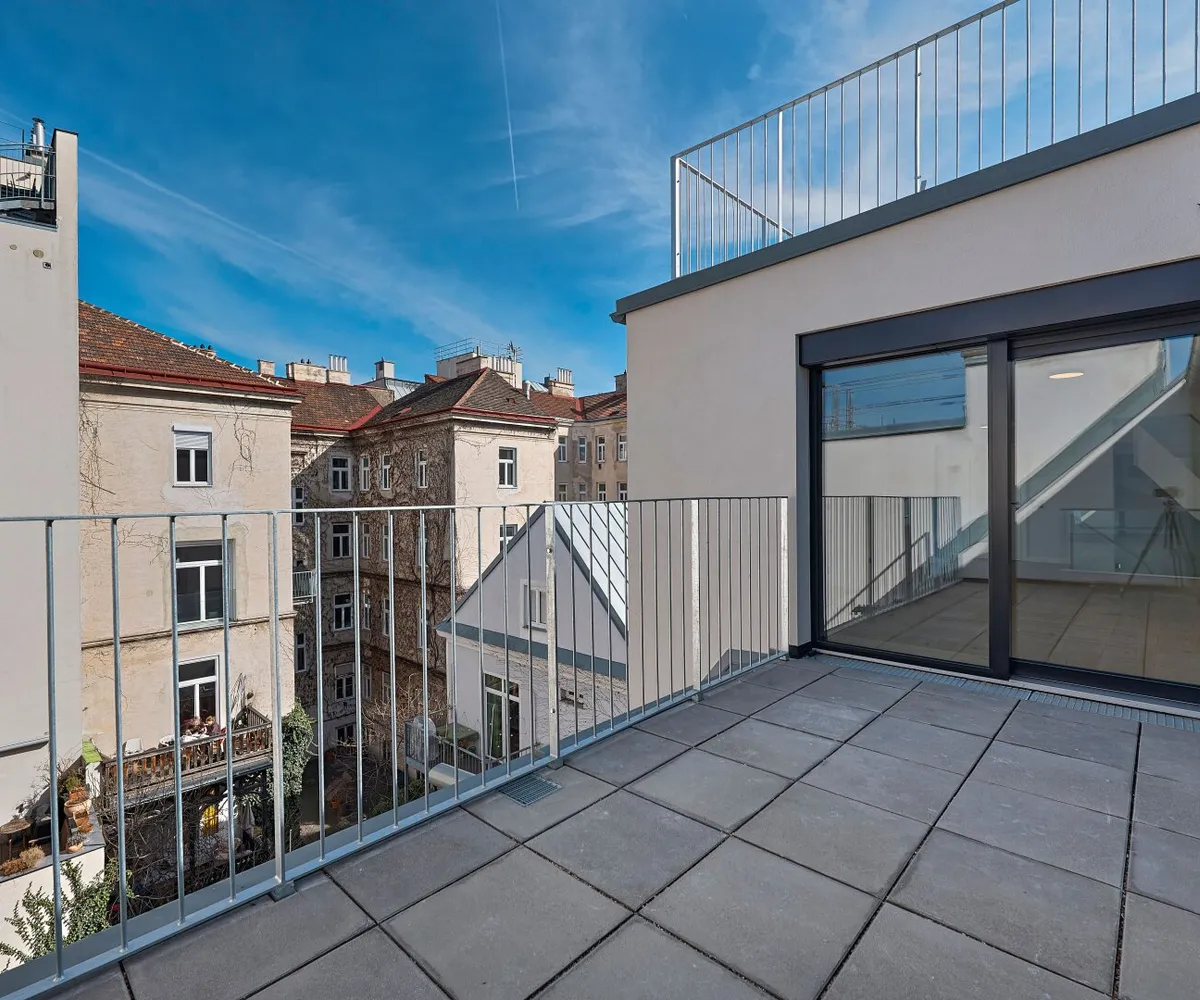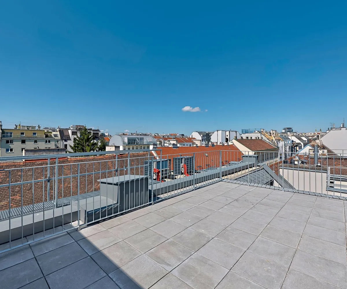 Ein wahres Highlight dieser Traumwohnung sind die drei großzügigen Terrassen: Zwei davon befinden sich auf der Wohnebene (mit ca. 8 qm und 12 qm) und eröffnen einen ruhigen Blick auf den Innenhof. Die traumhafte Dachterrasse mit über 38 qm ist über eine Innentreppe erreichbar und bietet einen atemberaubenden 360°-Panoramablick über Wien! Jede Terrasse ist großzügig genug, um einen Whirlpool zu beherbergen.
