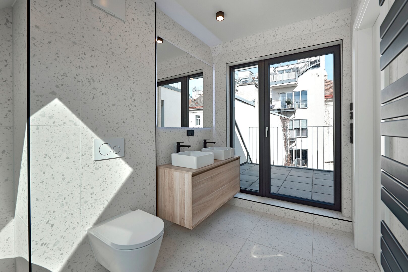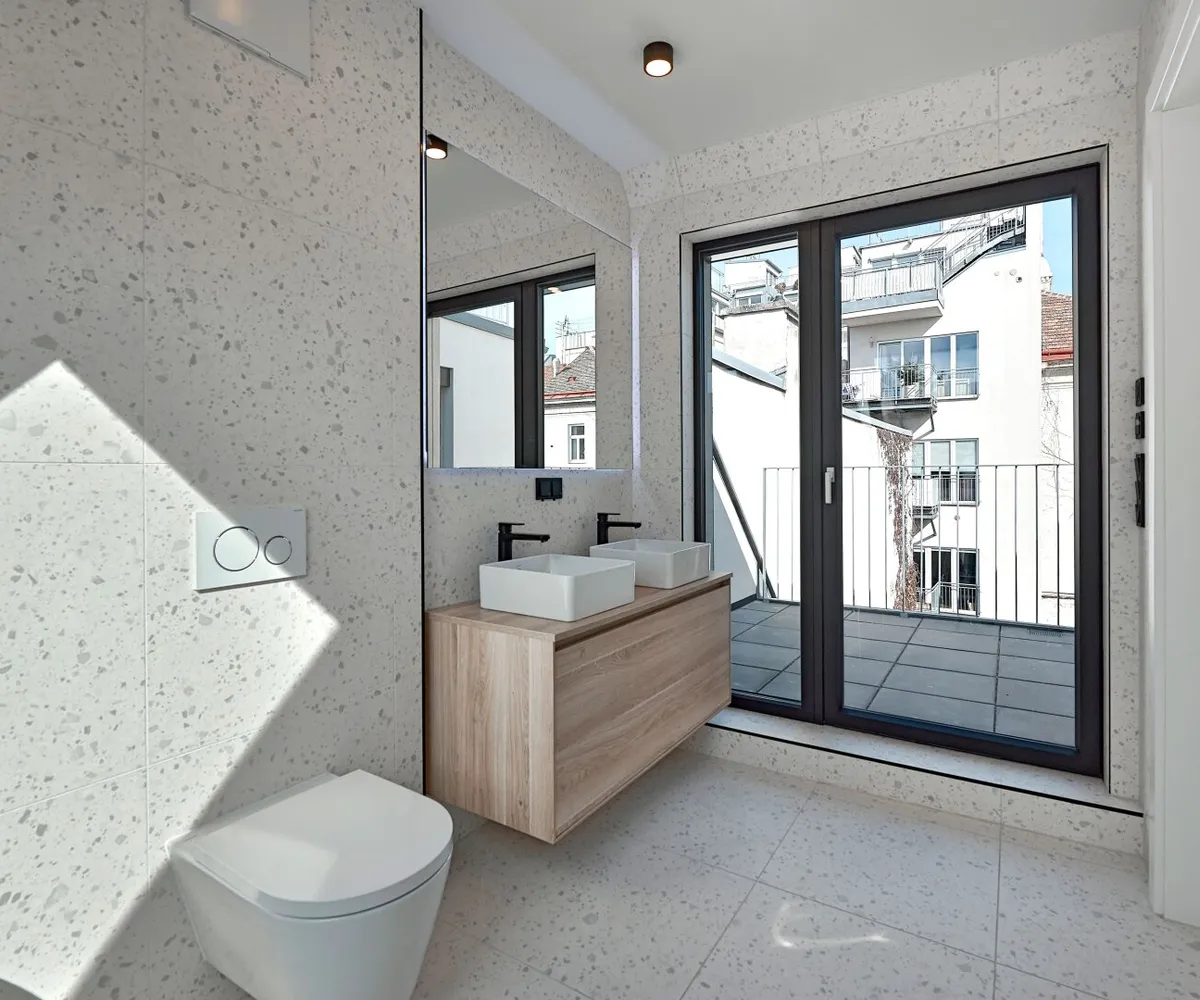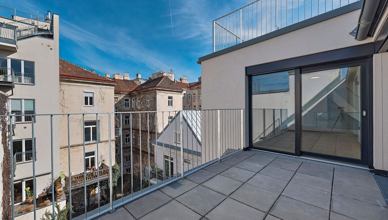Ein wahres Highlight dieser Traumwohnung sind die drei großzügigen Terrassen: Zwei davon befinden sich auf der Wohnebene (mit ca. 8 qm und 12 qm) und eröffnen einen ruhigen Blick auf den Innenhof. Die traumhafte Dachterrasse mit über 38 qm ist über eine Innentreppe erreichbar und bietet einen atemberaubenden 360°-Panoramablick über Wien! Jede Terrasse ist großzügig genug, um einen Whirlpool zu beherbergen.