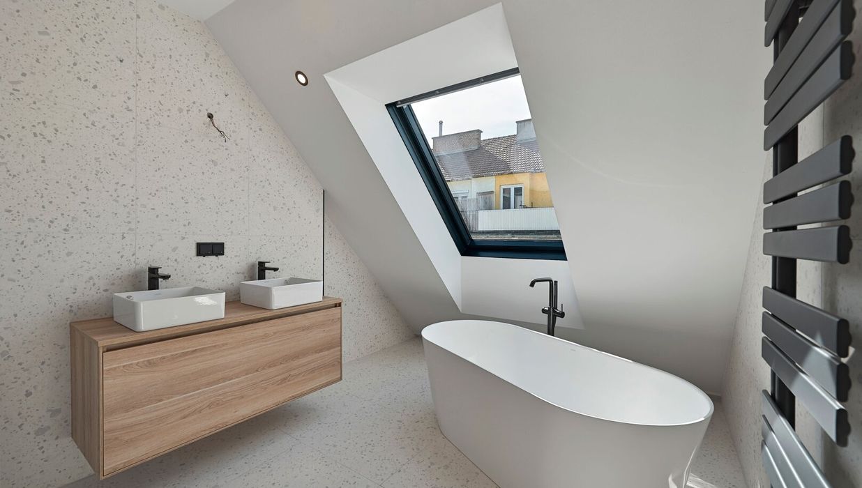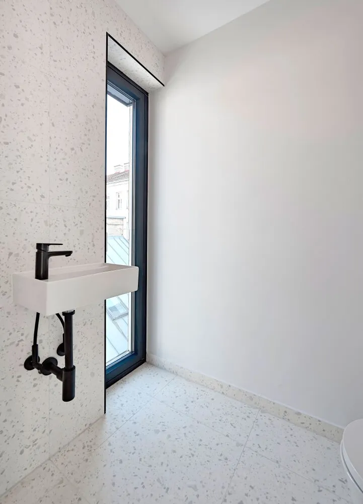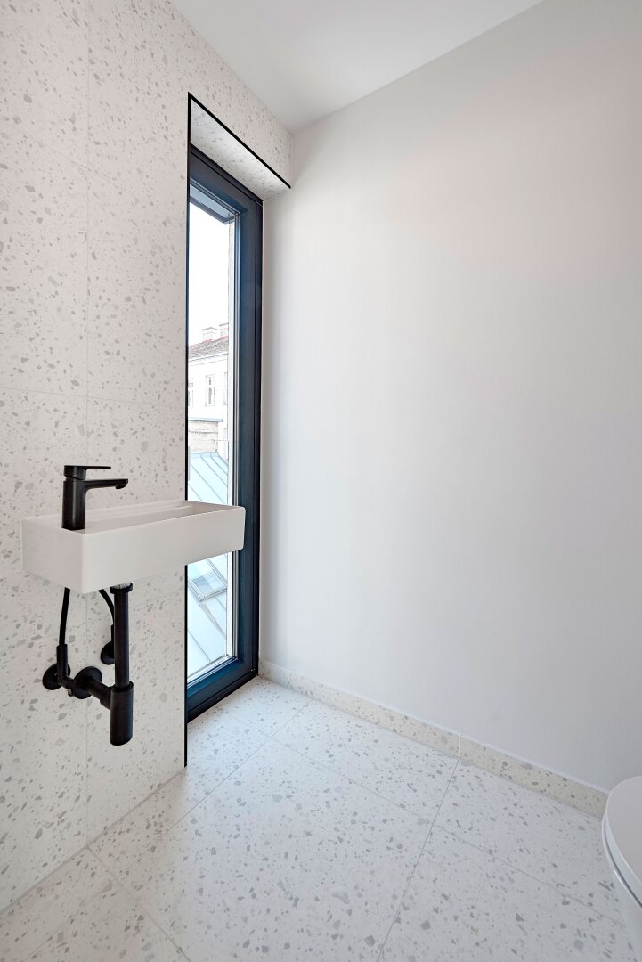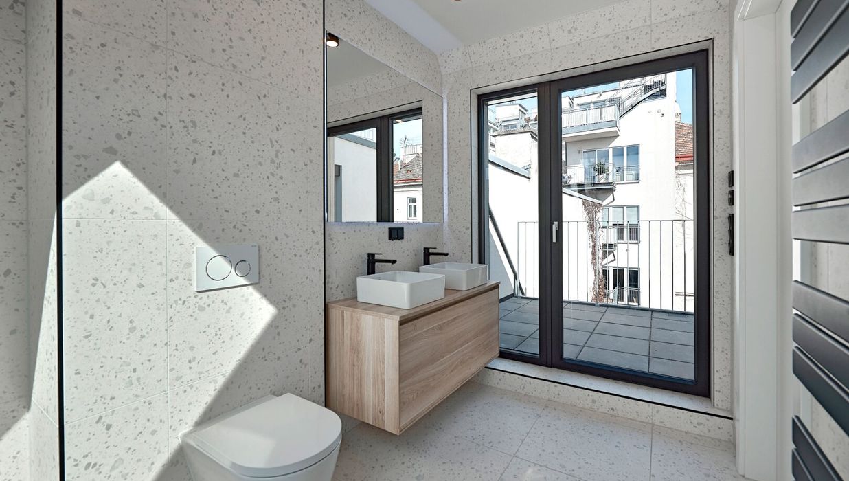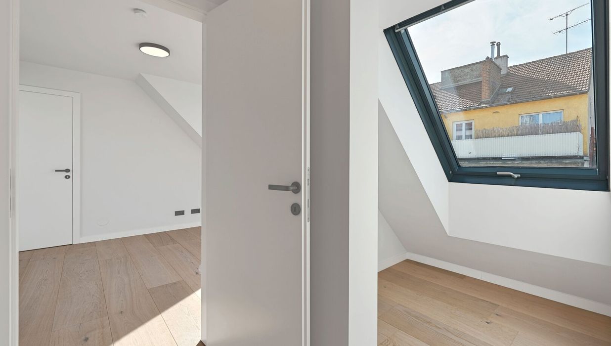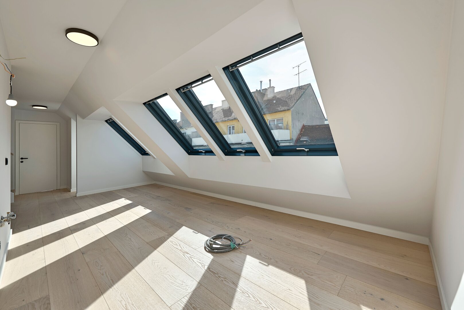 Die Dachwohnungen (drei Einheiten im 1. Dachgeschoß und das Penthouse im 2. Dachgeschoß) setzen dem Projekt die Krone auf. Großflächige Fensterfronten durchfluten die Wohnräume zu jeder Tageszeit mit natürlichem Licht.