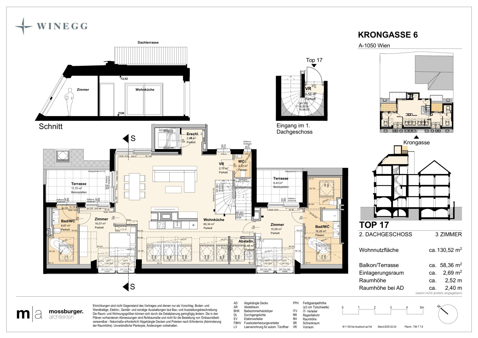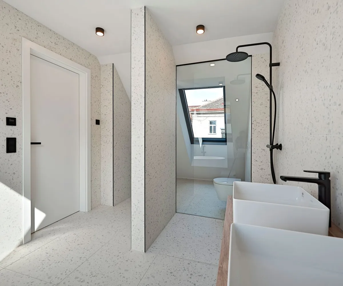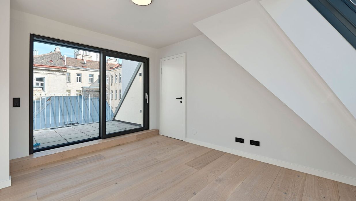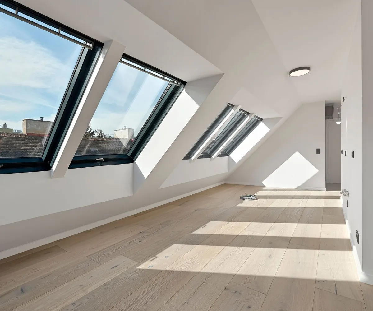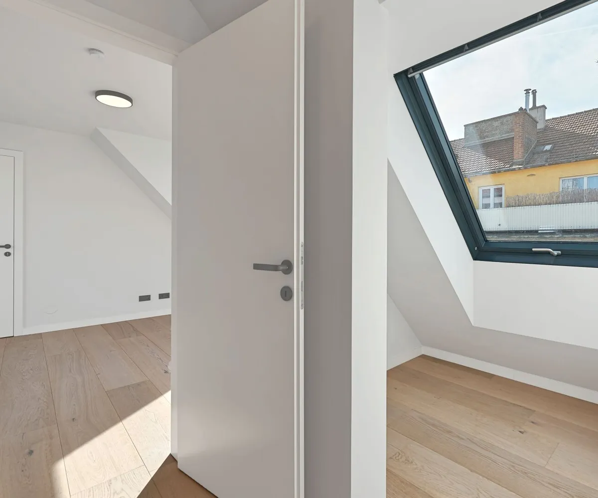 Ein eleganter Personenaufzug bringt Sie mühelos direkt in den bezaubernden Wohnbereich dieser einzigartigen Drei-Zimmmer-Dachgeschoßwohnung mit ca. 131 qm Wohnfläche. Der Zugang ist auch über das 1. Dachgeschoß möglich - eine Treppe führt in einen geschmackvollen Vorraum, der sich ideal als Garderobe eignet und durch ein diskret integriertes Gäste-WC ergänzt wird.