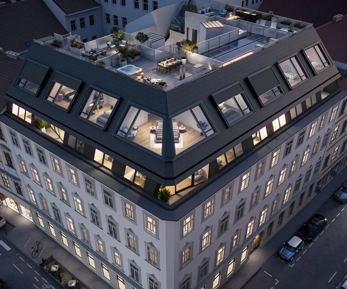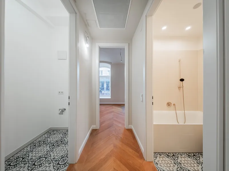 Das historische Ensemble in der Kettenbrückengasse 1 revolutioniert unser Verständnis von Raum und bildet ideale Konturen für die Verwirklichung der eigenen Individualität. Wer in Essenz No. 1 wohnt, hat Gestaltungsfreiheit wie nie zuvor. Offene Raumstrukturen lassen neue Dimensionen von Individualisierung und Maximierung entstehen. Alle Wohnräume bieten die perfekte Bühne, um der eigenen Kreativität freien Lauf zu lassen und dem persönlichen Stil Flügel zu verleihen.