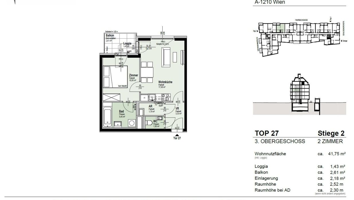 Das zukunftsweisende Wohnprojekt in der Fahrbachgasse 6–8 verbindet urbanes Wohnen mit der Möglichkeit zum Rückzug ins Grüne. Im zentral gelegenen Teil von Floridsdorf entstehen 92 moderne Eigentumswohnungen auf 2 Stiegen verteilt (Schliemanngasse 1 & Schloßhofer Straße 22) mit Wohnflächen von ca. 35 bis 138 m². Der vielfältige Wohnungsmix beweist viel Liebe zum Detail und bietet reichlich Raum für unterschiedliche Lebenskonzepte: Genießen Sie den Luxus zukunftsweisender Wohnplanung, perfekt zugeschnitten auf all Ihre Wünsche. Die Ausstattung folgt nicht nur gestalterischen Kriterien. Vielmehr wird auf die Verwendung von langlebigen und qualitätsvollen Materialien aus Österreich geachtet.