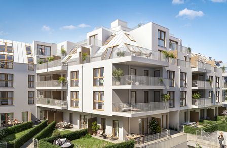 Alle Eigentumswohnungen verfügen über 2 bis 5 Zimmer mit Größen von ca. 37 bis 180 m² und perfekt konzipierten Grundrissen. Großzügige Balkone, Terrassen und atemberaubende private Gärten auf verschiedenen Ebenen erhöhen den Wohnkomfort. Ein besonderes Highlight ist der begrünte Innenhof, der sowohl ein Treffpunkt als auch eine Ruheoase ist. Dort, wo Nachhaltigkeit, Ästhetik und Lebensqualität aufeinandertreffen, entsteht eine unwiderstehliche Versuchung: ein modernes, frisches Leben, das zum Verlieben schön ist.
