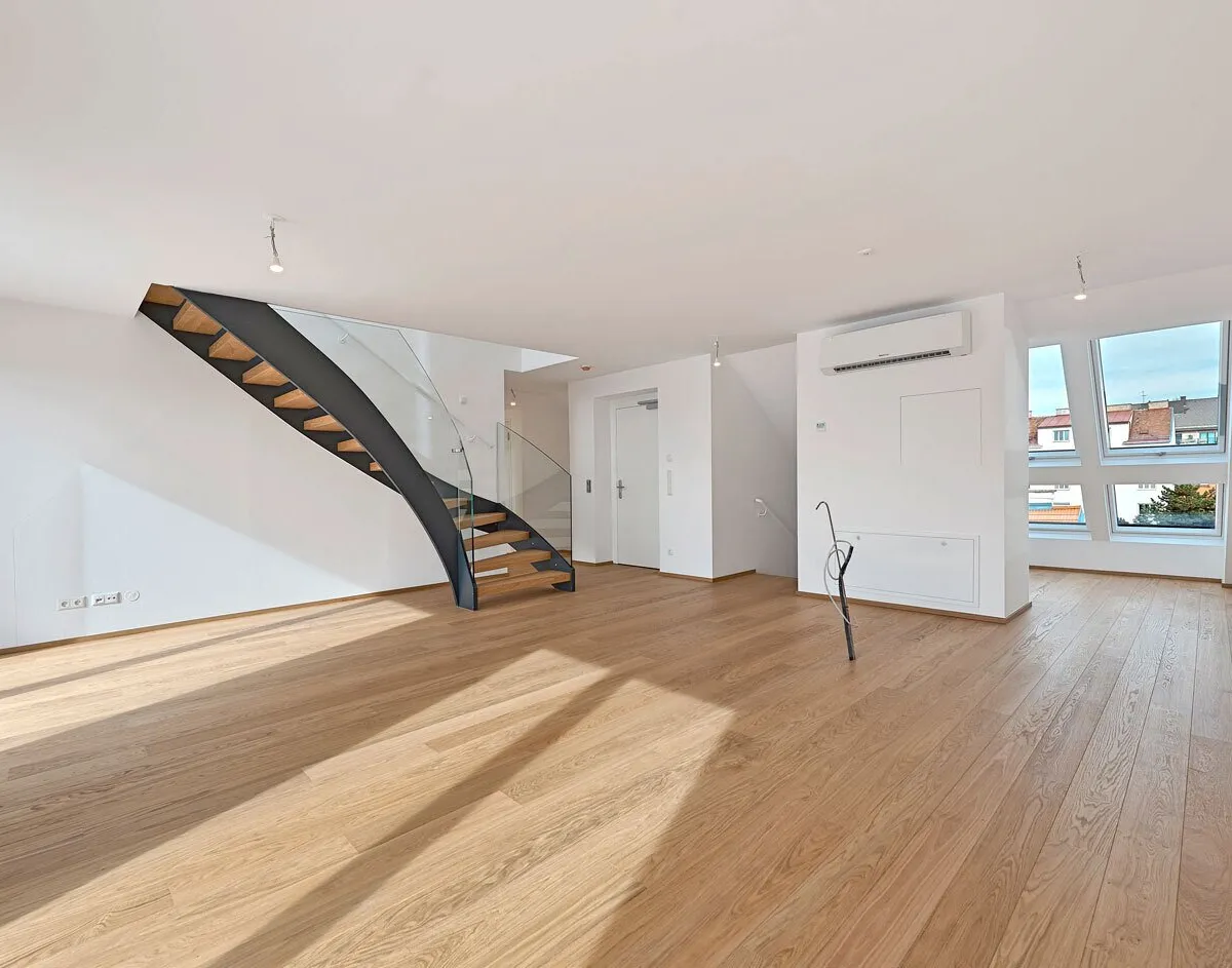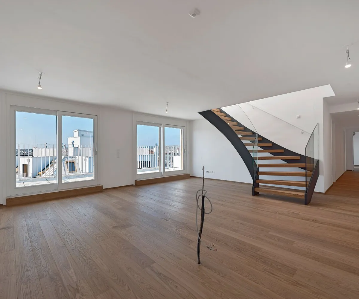 Das Penthouse mit 4 Zimmer befindet sich im 2. Dachgeschoss mit eigenem Liftzugang und bietet eine Wohnfläche von ca. 136 m² sowie zwei Terrassen und eine Dachterrasse. Die Raumaufteilung gliedert sich wie folgt: