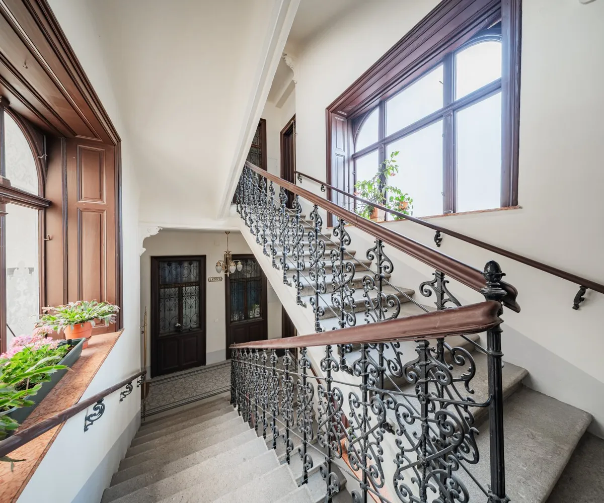 Die Liegenschaft umfasst ein Hochparterre, ein elegantes Mezzanin sowie drei klassische Regelgeschosse. Die durchdachte architektonische Gliederung und die liebevoll erhaltenen Details zeugen eindrucksvoll vom Stil der Wiener Gründerzeit.