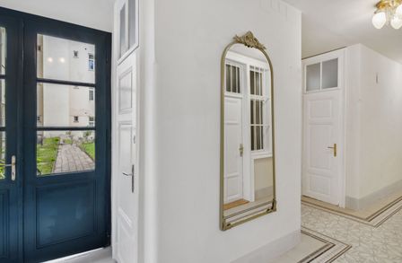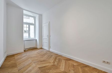 Diese sehr helle Wohnung mit alt-erhaltenen Stilaltbauelementen liegt im 3. OG und ist mit einem modernen Lift barrierefrei erreichbar. Folgende Räumlichkeiten, welche gerade saniert werden, stehen der neuen Eigentümerin bei Eintritt durch eine weiße Doppelflügeltüre zur Verfügung: