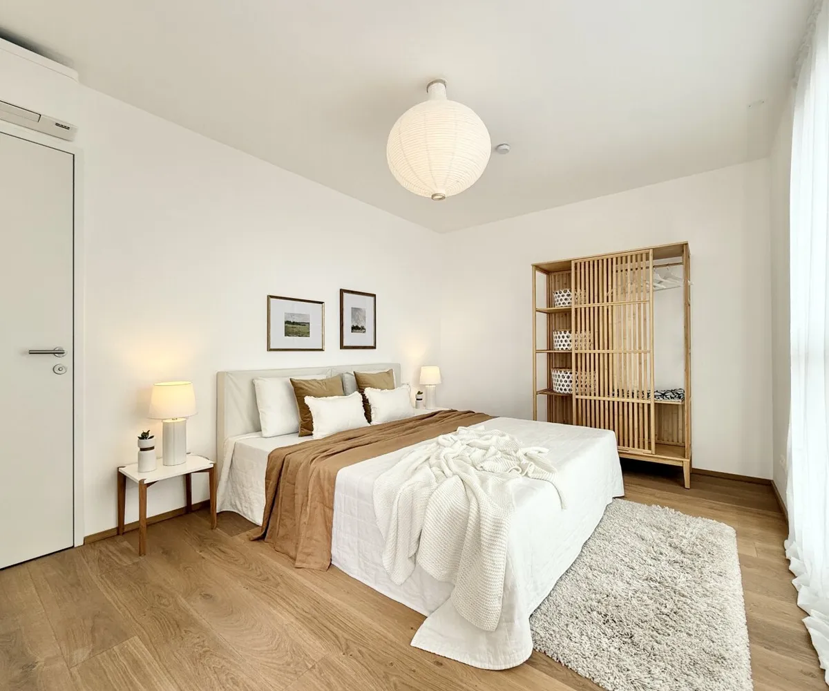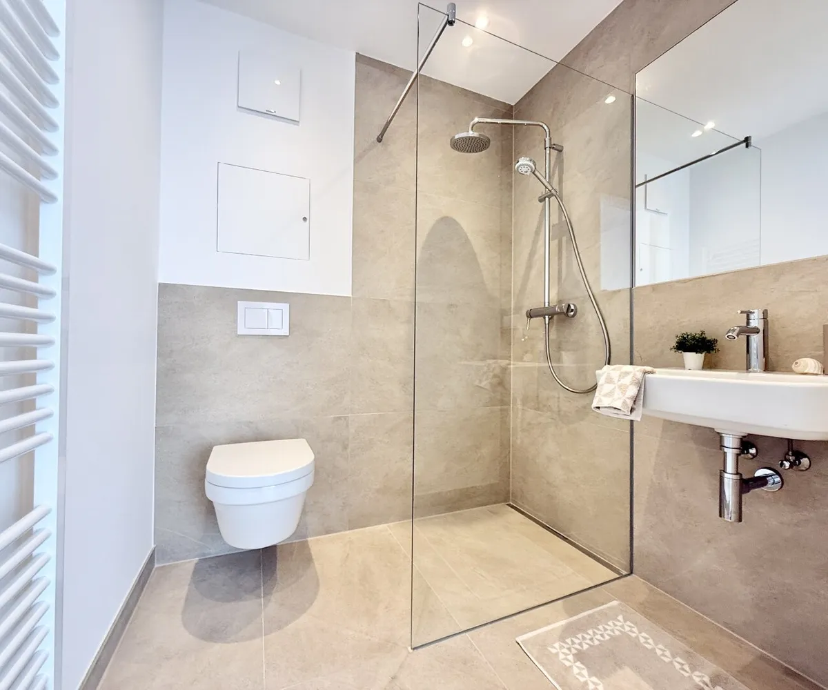 Beim Betreten der Wohnung heißt Sie ein geräumiger Vorraum willkommen, der den Weg zum großzügigen Wohnraum bildet. Der Wohn-Essbereich besticht durch seine Großzügigkeit und lädt zu gemütlichen Abenden mit Familie und Freunden ein. Das Schlafzimmer bietet nicht nur Platz zum Entspannen, sondern auch einen großzügigen Schrankraum mit Ankleide, der jede Menge Stauraum für Ihre Garderobe bietet. Zudem verfügt das Schlafzimmer über einen direkten Zugang zum Badezimmer, das mit einer Badewanne und einer Dusche ausgestattet ist, um Ihnen den Komfort der Privatsphäre zu bieten.