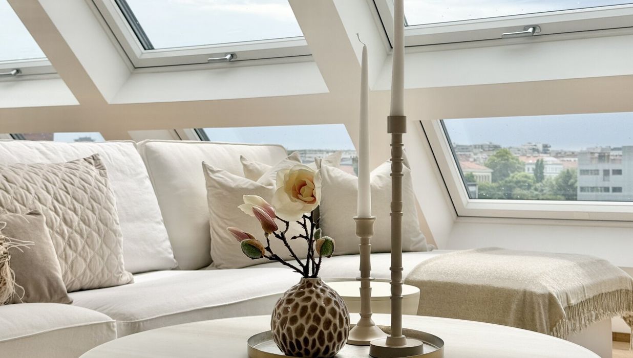 Das Penthouse selbst beeindruckt mit einer eleganten und modernen Gestaltung, die höchsten Wohnansprüchen gerecht wird. Großzügige Wohnbereiche bieten viel Platz für Entspannung und Unterhaltung, während die raumhohen Fensterflächen für eine lichtdurchflutete Atmosphäre sorgen und den Blick auf die umliegende Landschaft freigeben. Die erstklassige Ausstattung des Penthouse lässt keine Wünsche offen. Edle Eichenparkettböden, hochwertige Markensanitärprodukte und eine vollständig ausgestattete Küche verleihen dem Wohnraum einen Hauch von Luxus und Exklusivität. Eine Klimaanlage im Dachgeschoss sorgt auch an heißen Sommertagen für angenehme Temperaturen, während eine Paketboxenanlage und eine Videogegensprechanlage für Komfort und Sicherheit im Alltag sorgen.