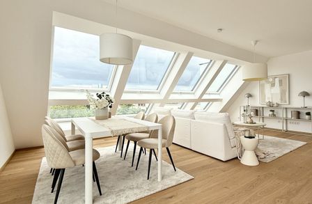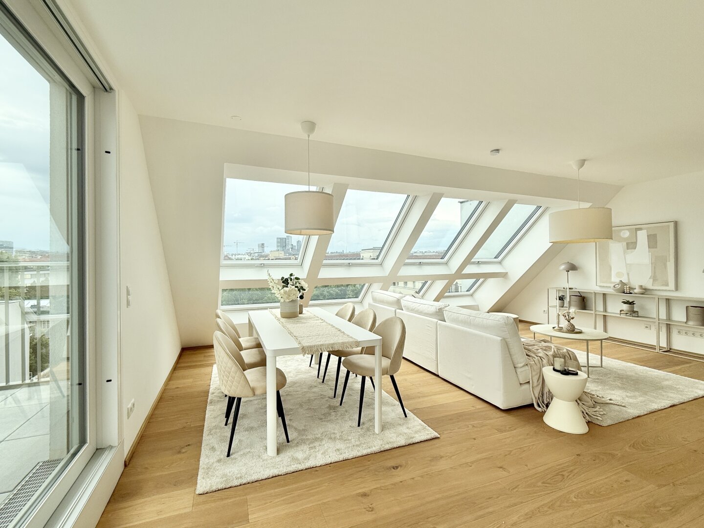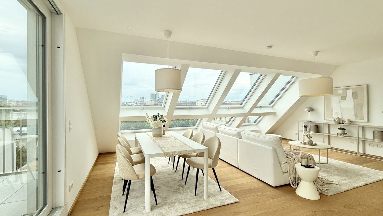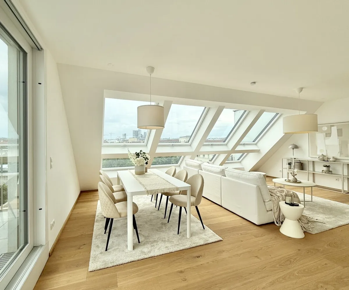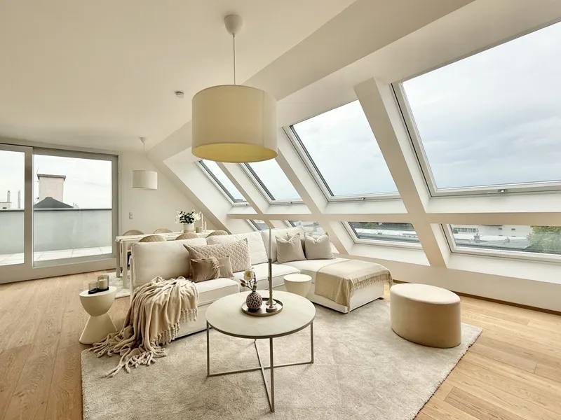 Das spektakuläre Penthouse im Neubauprojekt Fahrbachgasse 6-8 in Meidling erhebt sich über den Dächern der Stadt und bietet ein unvergleichliches Wohngefühl für anspruchsvolle Bewohner. Vereint mit seiner erstklassigen Lage im zukunftsweisenden Wohnprojekt in Meidling, verspricht es luxuriöse Lebensqualität gepaart mit urbaner Raffinesse. Das Herzstück dieses außergewöhnlichen Penthouse ist zweifellos die atemberaubende Panoramaaussicht, die sich über die Stadt erstreckt und jeden Tag mit neuen Impressionen begeistert. Von der großzügigen Terrasse und der Dachterrasse aus können Bewohner den Blick über die Dächer von Wien schweifen lassen und dabei das pulsierende Leben der Stadt genießen.