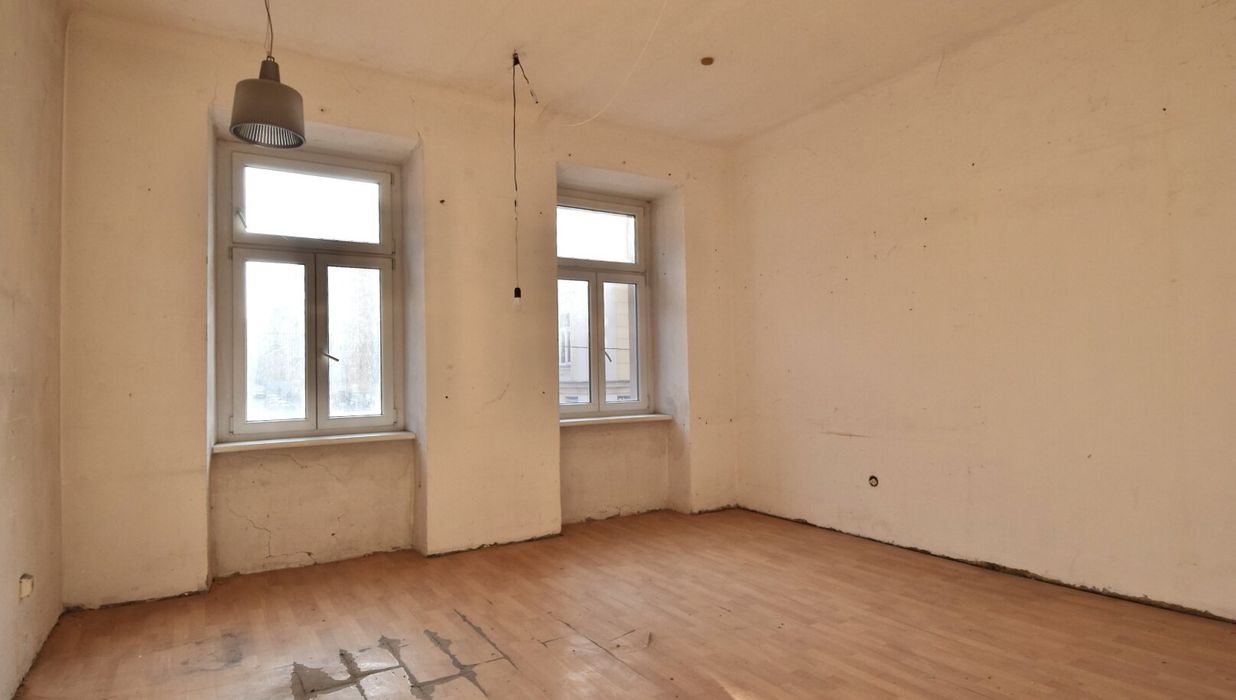 Das sonnige Wohnzimmer bietet einen schönen Ausblick, darüber hinaus verfügt diese Wohnung über ein hofseitig gelegenes Zimmer und einen hellen Vorraum.