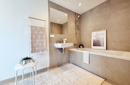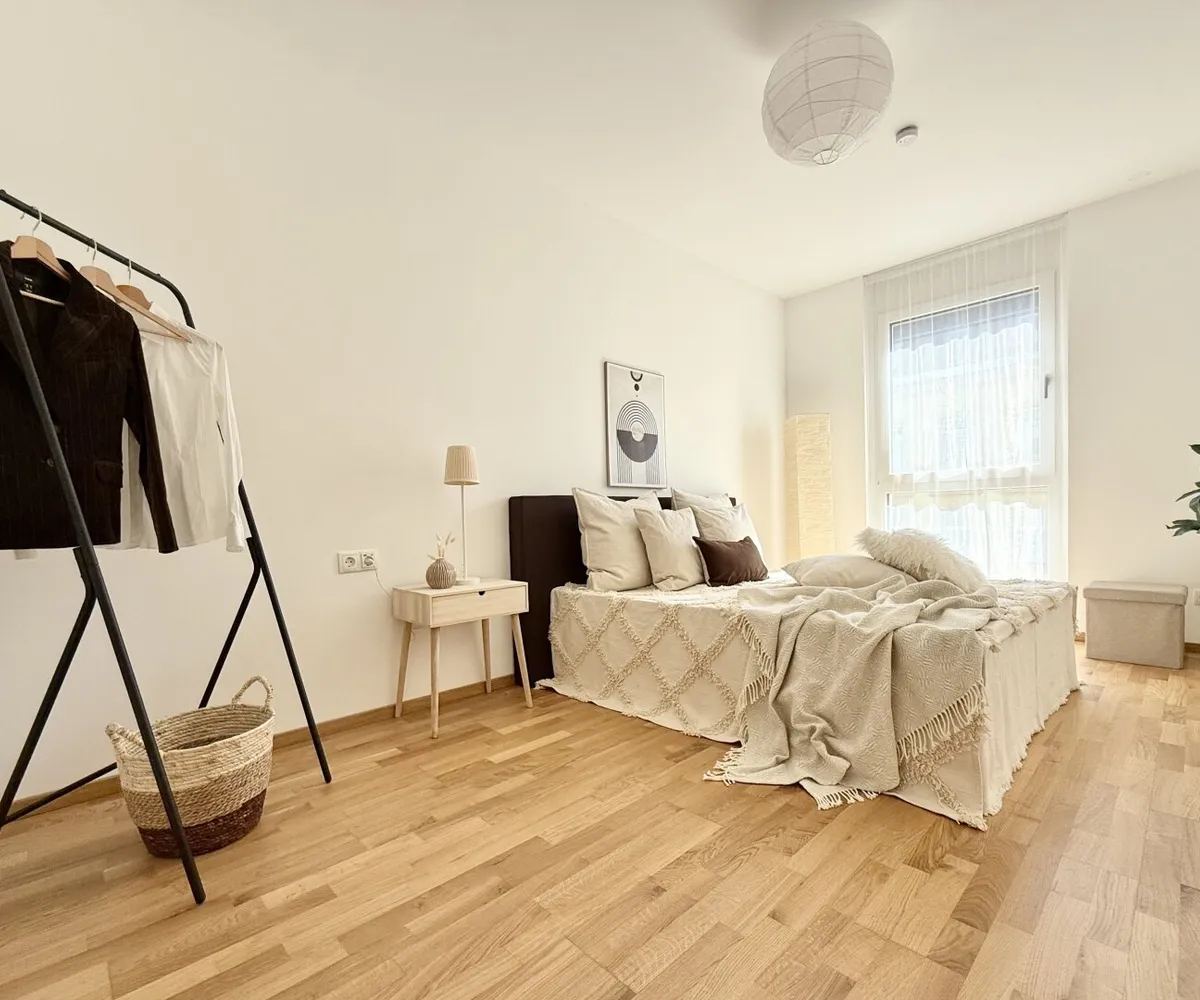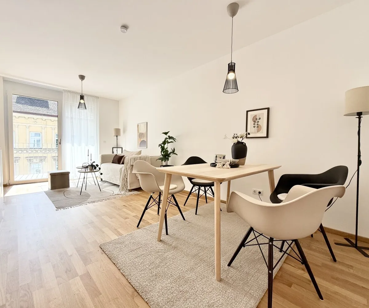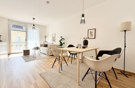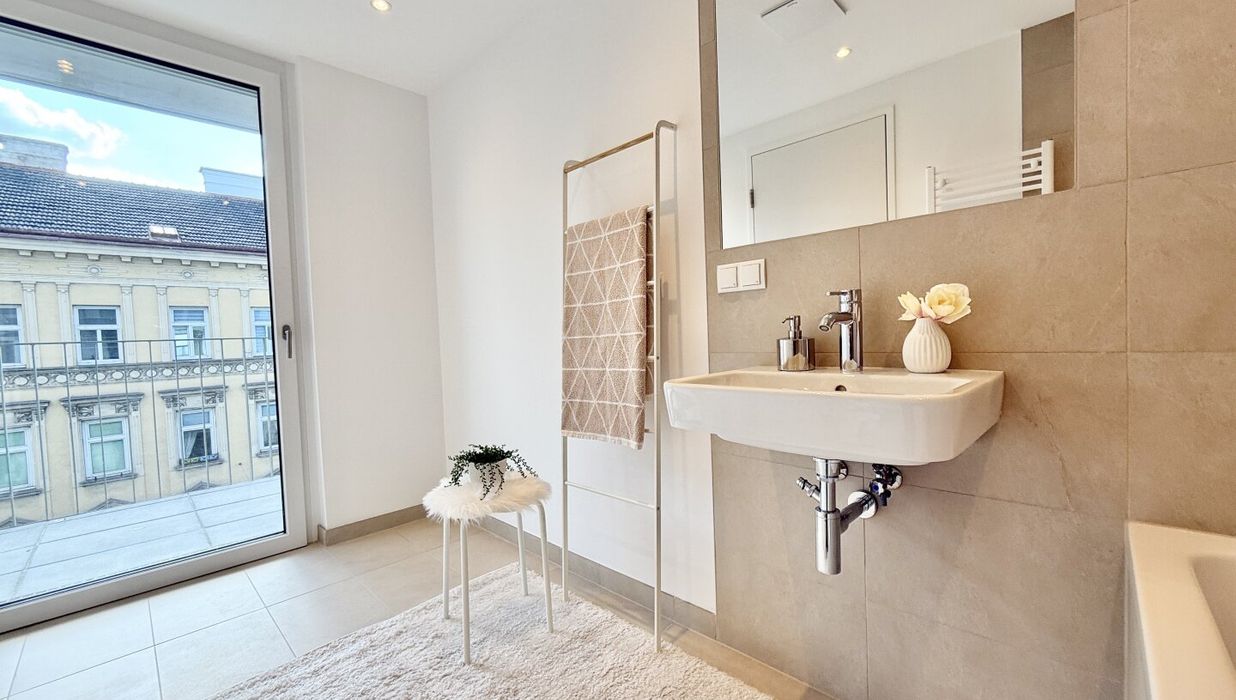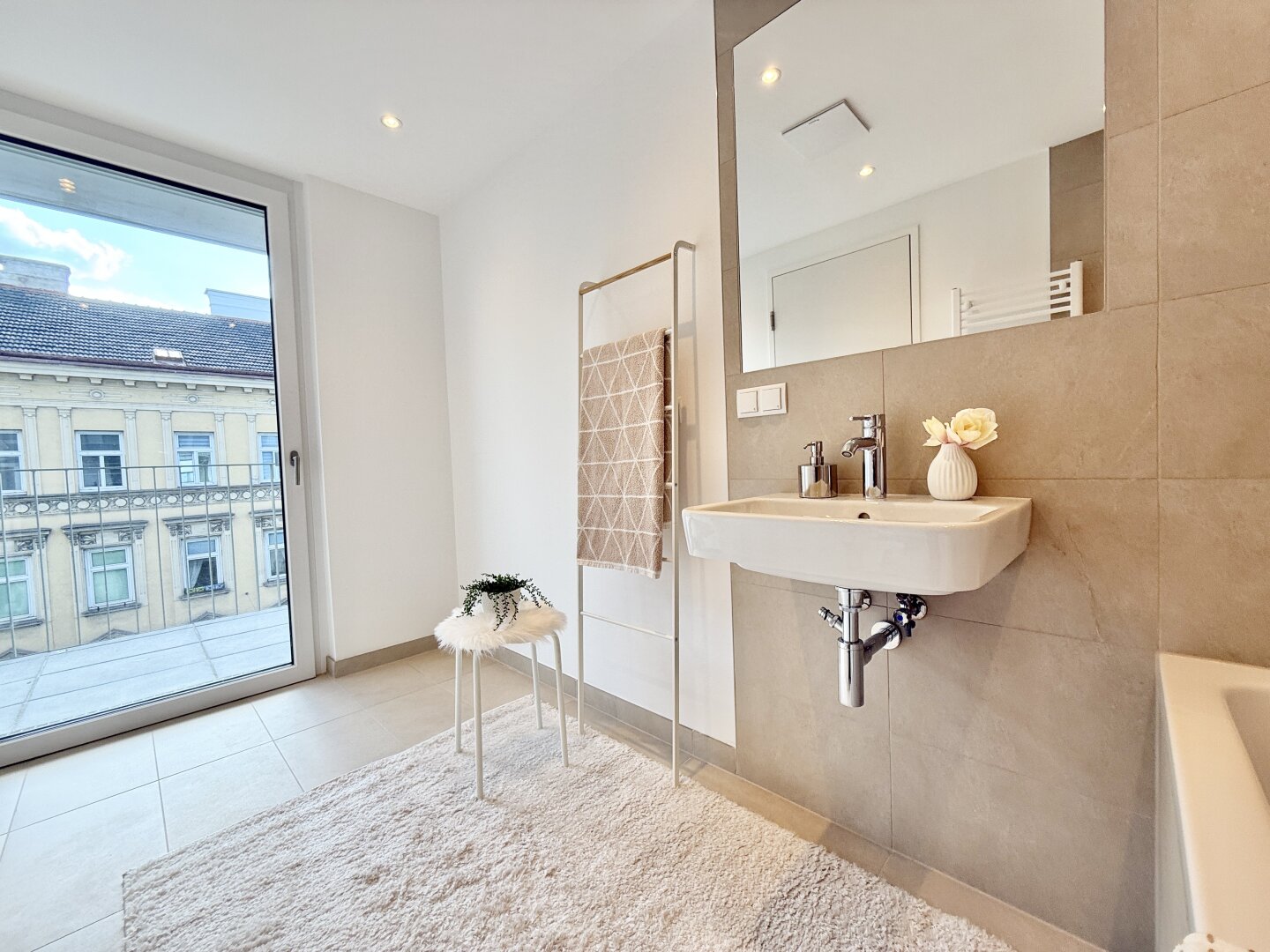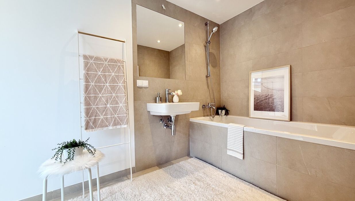 Die modernen Wohneinheiten sind mit Parkett und Fußbodenheizung ausgestattet. Das sorgt nicht nur für warme Füße, auch die Energiekosten können dank Fernwärme gesenkt werden. Außenliegender, elektrisch gesteuerter Sonnenschutz und Klimaanlagen im Dachgeschoß versprechen perfekt temperierte Sommertage. Die hochwertig ausgestatteten Bäder wurden als wahre Wohlfühlzonen konzipiert. Eine perfekte Symbiose aus Funktionalität und Design verstärkt dabei den Wellness-Faktor.