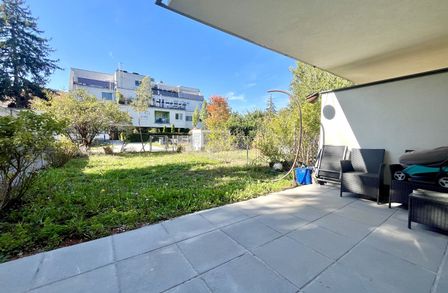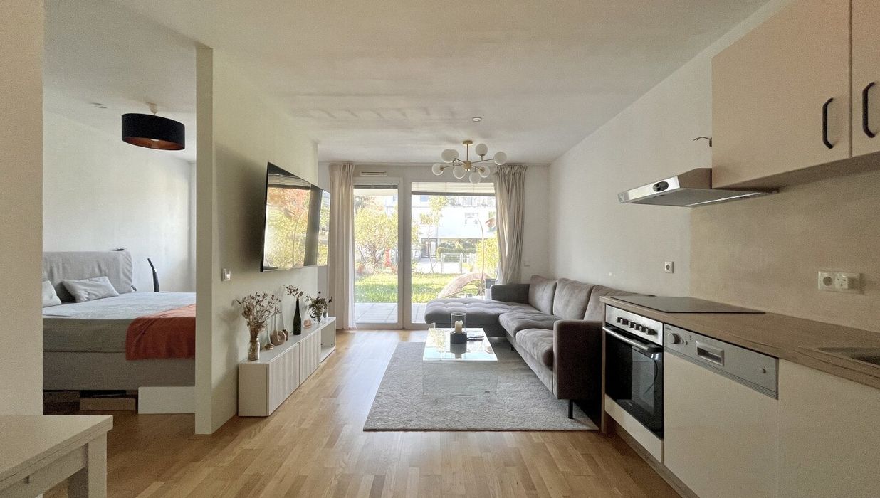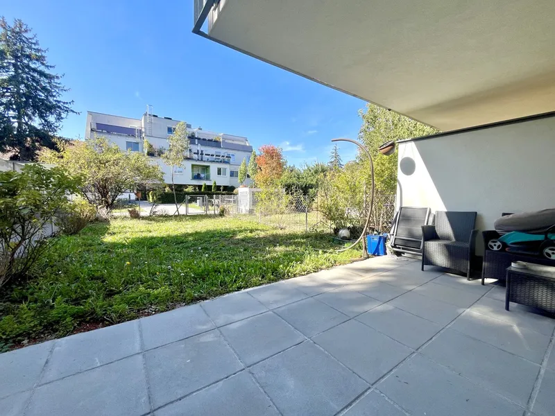 Die lichtdurchfluteten Wohnbereiche profitieren von großzügigen Fensterfronten, die den Blick auf die Terrasse und den liebevoll gestalteten Garten freigeben. Hier genießen Sie tagsüber die Sonne und können die Natur in vollen Zügen genießen. Die aktuell 9 m² große Terrasse wird im Sommer vergrößert, um Ihnen noch mehr Wohnkomfort im Freien zu bieten. Die Wohnung kann bei Bedarf auch möbliert übergeben werden, was Ihnen einen unkomplizierten Start ermöglicht.