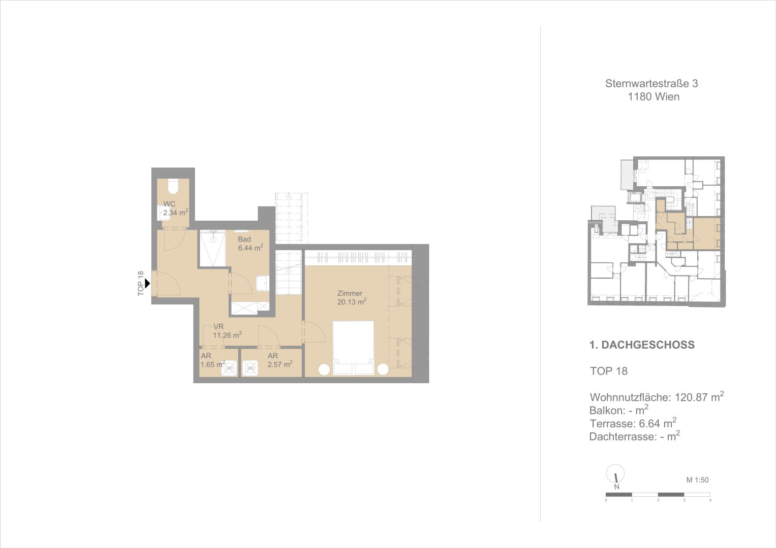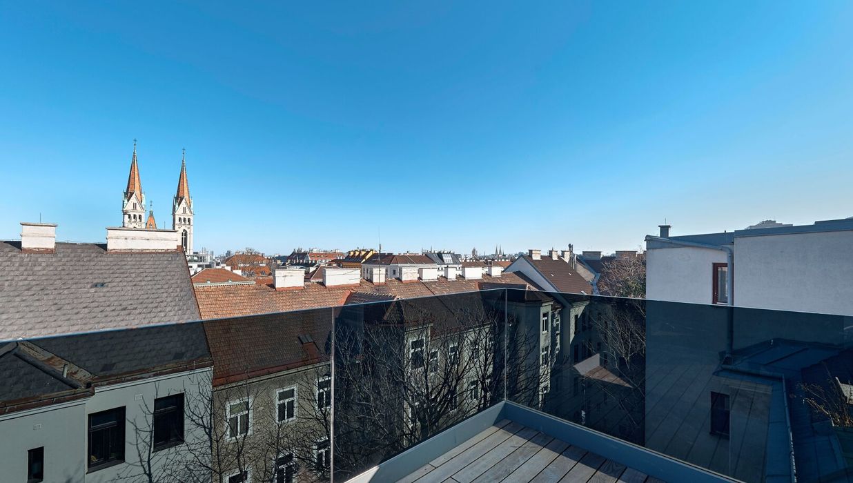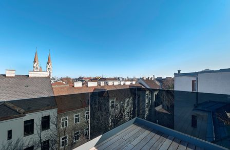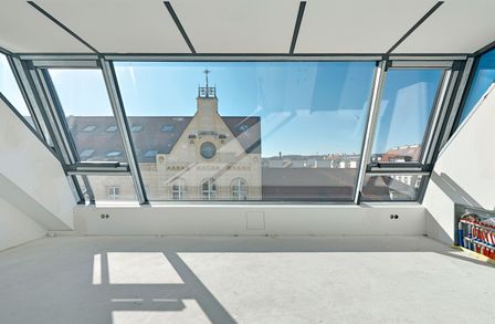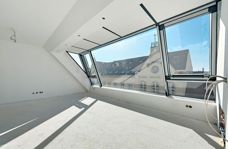 Der Drei-Zimmer-Erstbezug befindet sich im 1. Dachgeschoß und bietet über 120 qm Wohnfläche auf zwei Ebenen und eine hofseitige Terrasse mit rund 7 qm.