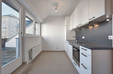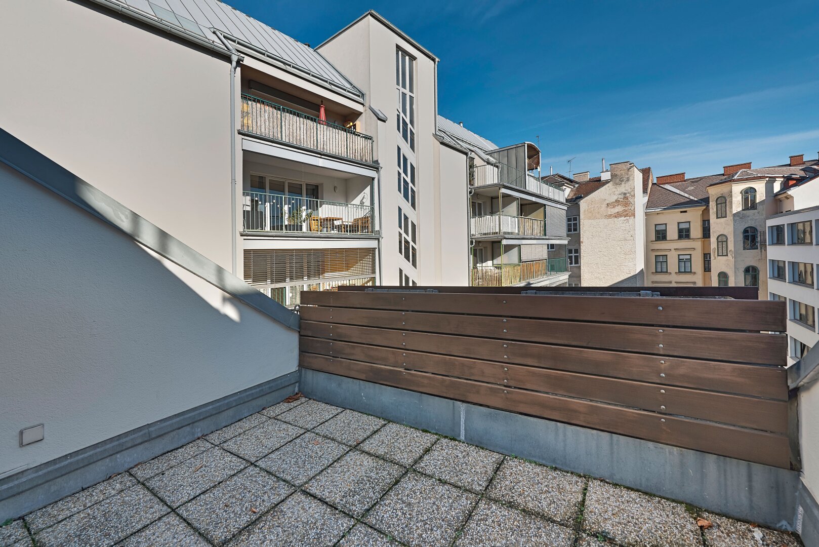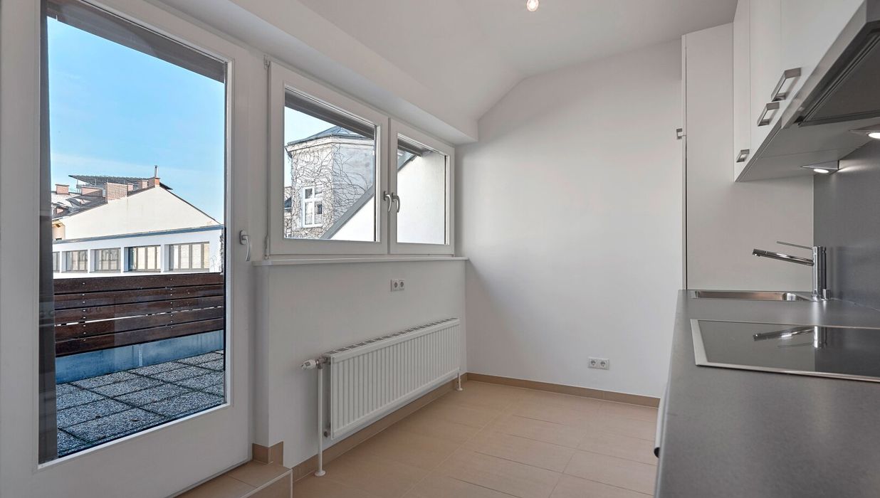 Die 2-Zimmer-Wohnung verfügt über ca. 60 m² Wohnfläche sowie eine Terrasse mit ca. 7,31 m² und befindet sich im 4. Obergeschoss (= Dachgeschoß) .
