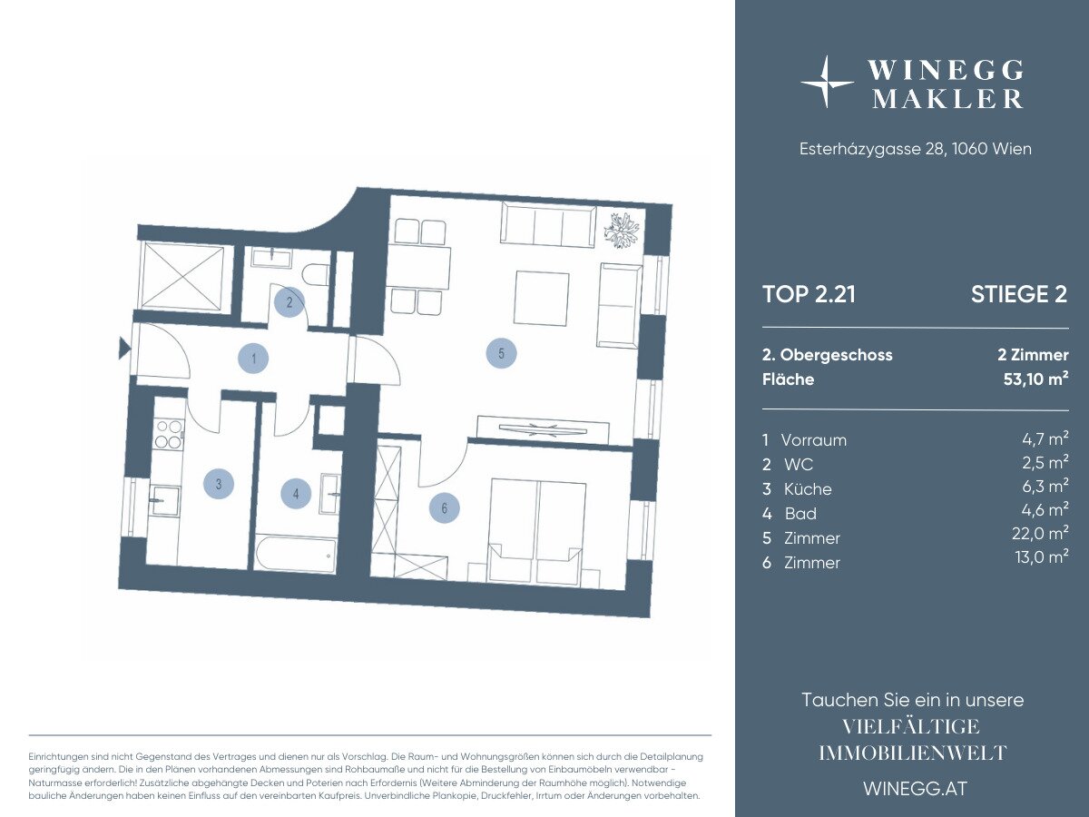 Die 2-Zimmer-Wohnung verfügt über ca. 53 m² Wohnfläche und befindet sich im 2. Obergeschoss .