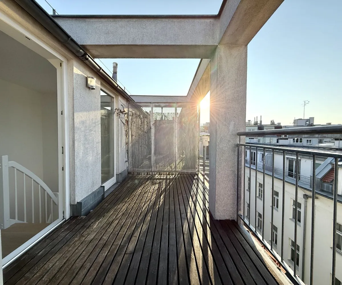 Diese wunderbare Dachgeschosswohnung erhielt eine umfassende Sanierung, welche eine moderne Atmosphäre in einer urbanen Lage hervorruft. Im Maisonnette-Stil begeistert die Einheit mit einer tollen Raumaufteilung und mit einer ca. 11,6 m² Terrasse, wo Sie den Blick über die Dächer Wiens genießen können.