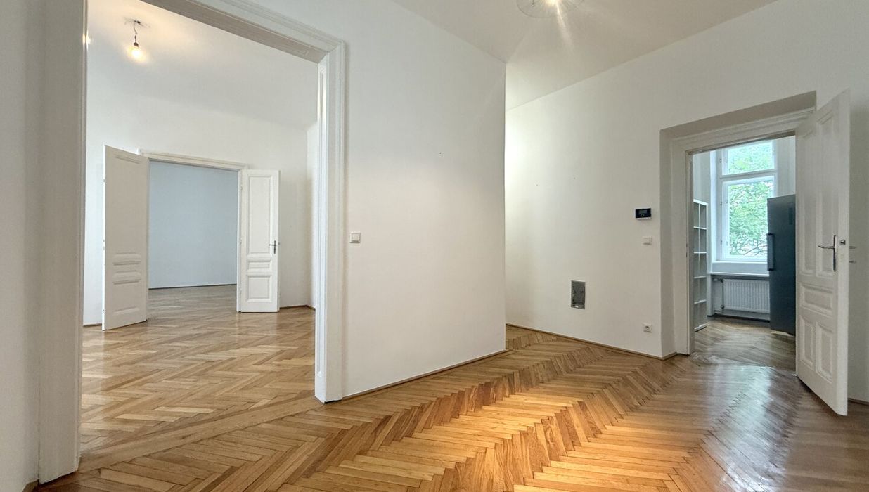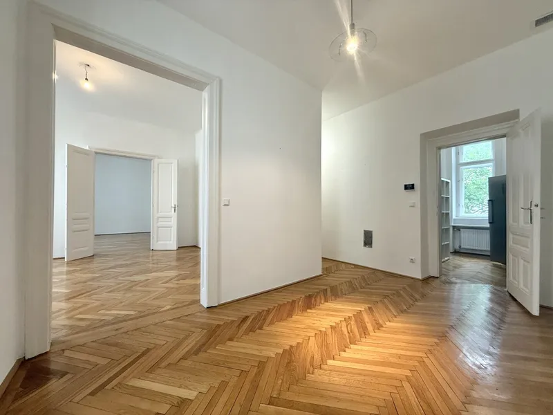 Diese außergewöhnliche Altbauwohnung besticht durch ihre großzügige Raumaufteilung , stilvolle Ausstattungsdetails und ein harmonisches Wohnambiente. Schon beim Eintreten empfängt Sie ein beeindruckender, heller und großzügiger Vorraum , der das offene Raumgefühl unterstreicht und sich ideal als repräsentativer Empfangsbereich eignet.