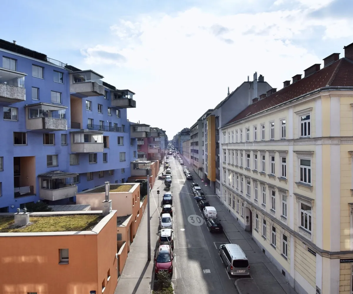 Die Immobilie befindet sich in der Buchengasse , einer sehr ruhigen Seitengasse, nur wenige Gehminuten vom Waldmüllerpark und Matzleinsdorfer Platz entfernt.