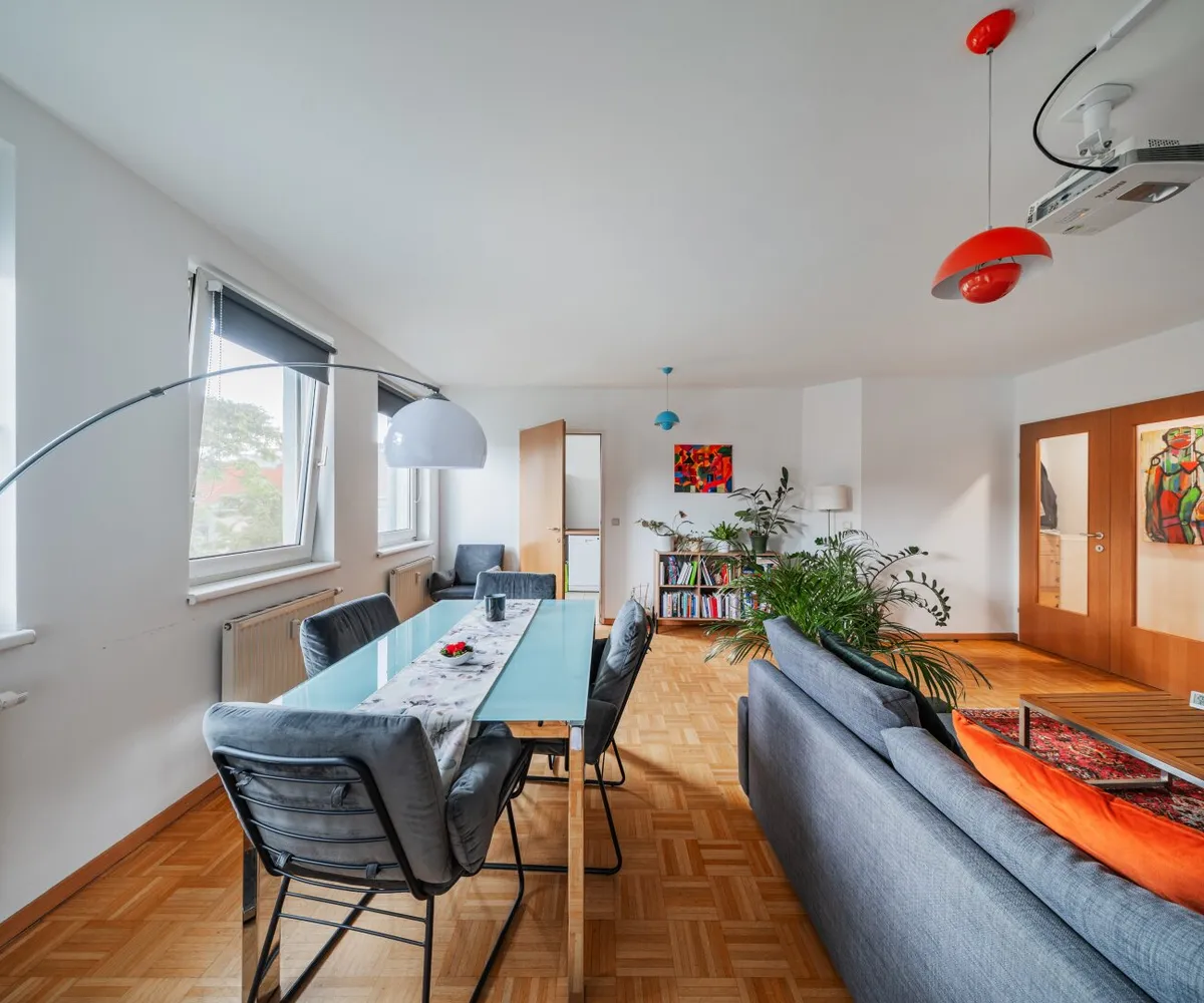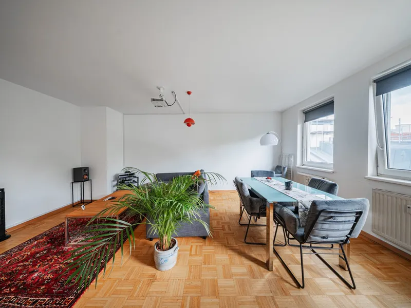 Unverbauter Blick ins Grün, Privatsphäre pur und eine Raumaufteilung, die eine Maisonette so charmant macht: Das erwartet Sie in dieser sich über zwei Ebenen erstreckenden Dachgeschoss-Wohnung im Herzen des 4. Wiener Gemeindebezirks . Im 7. Liftstock die Wohnebene, im 8. Stock die Schlafräume - das garantiert viel Helligkeit, viel Freiheitsgefühl und vor allem viel Ruhe inmitten der Großstadt.